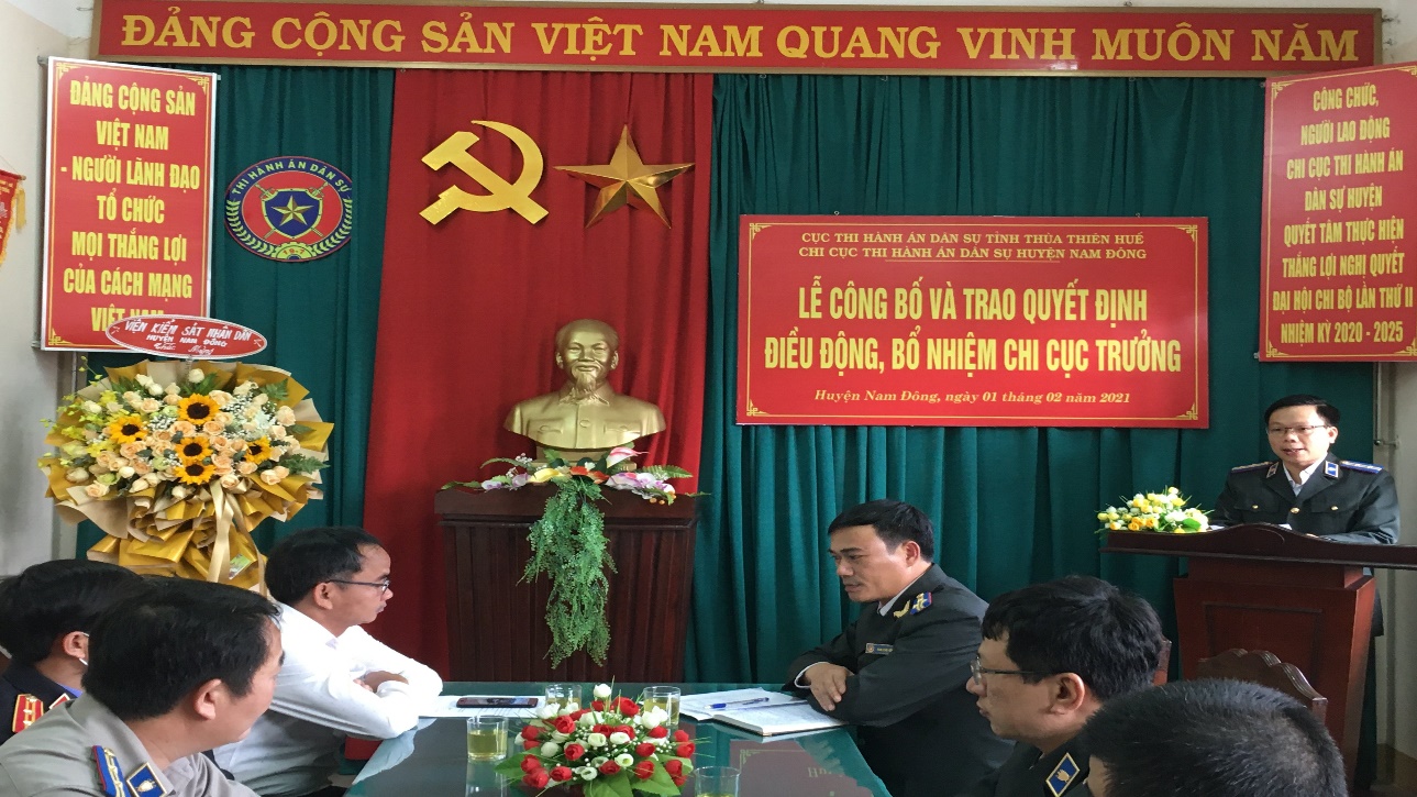 Chiều 01/02/2021, Cục Thi hành án dân sự tỉnh Thừa Thiên Huế đã tổ chức Lễ công bố và trao Quyết định điều động, bổ nhiệm Chi cục trưởng Chi cục Thi hành án dân sự huyện Nam Đông