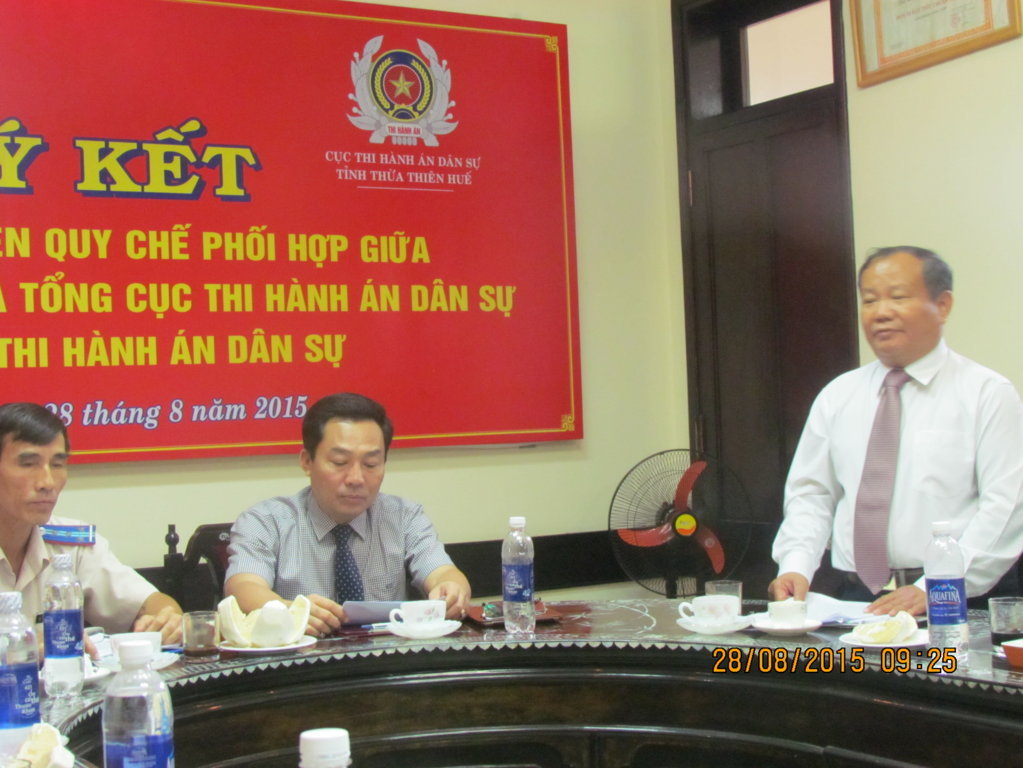 Ngày 28/8/2015 Cục Thi hành án dân sự và Bảo Hiểm xã hội tỉnh Thừa Thiên Huế tổ chức Lễ ký kết Chương trình thực hiện Quy chế phối hợp giữa Bảo hiểm xã hội Việt Nam và Tổng cục Thi hành án dân sự trong công tác thi hành án dân sự .