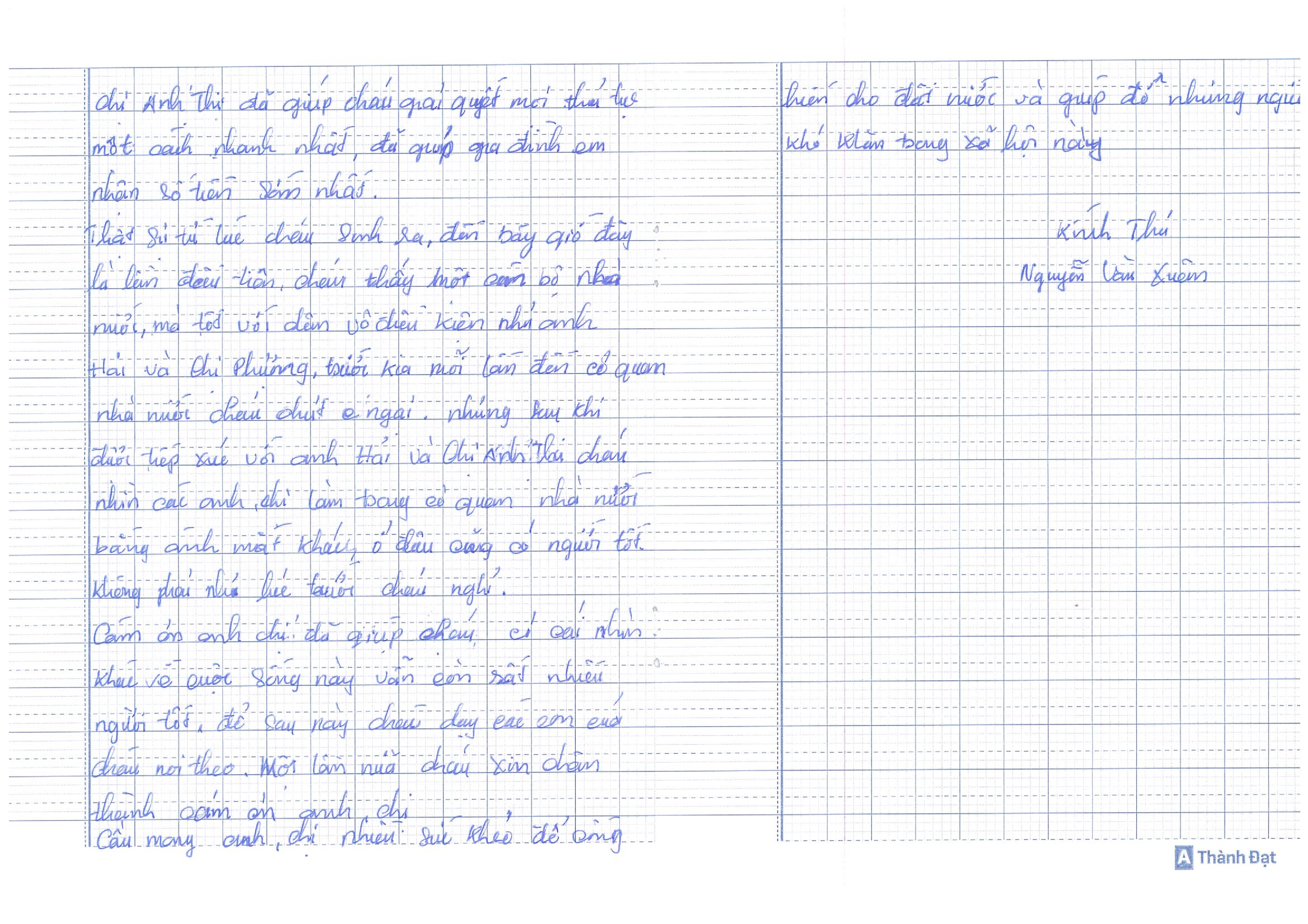 NGƯỜI DÂN VIẾT THƯ CÁM ƠN GỬI ĐẾN CÔNG CHỨC CƠ QUAN THI HÀNH ÁN DÂN SỰ TỈNH THỪA THIÊN HUẾ