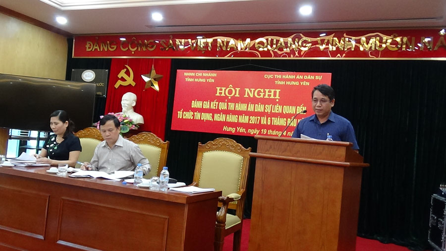 Thực hiện Quy chế phối hợp giữa Ngân hàng Nhà nước Chi nhánh tỉnh Hưng Yên và Cục Thi hành án dân sự (THADS) tỉnh Hưng Yên, ngày 19/4/2018, Cục THADS tỉnh Hưng Yên đã phối hợp Ngân hàng Nhà nước Chi nhánh tỉnh Hưng Yên tổ chức Hội nghị Đối thoại giữa cơ quan Thi hành án dân sự hai cấp trong tỉnh và các tổ chức tín dụng trong công tác thi hành án dân sự, đồng chí Nguyễn Minh Quang - Tỉnh ủy viên, Phó Chủ tịch UBND tỉnh, Trưởng Ban Chỉ đạo THADS tỉnh dự và chủ trì Hội nghị.