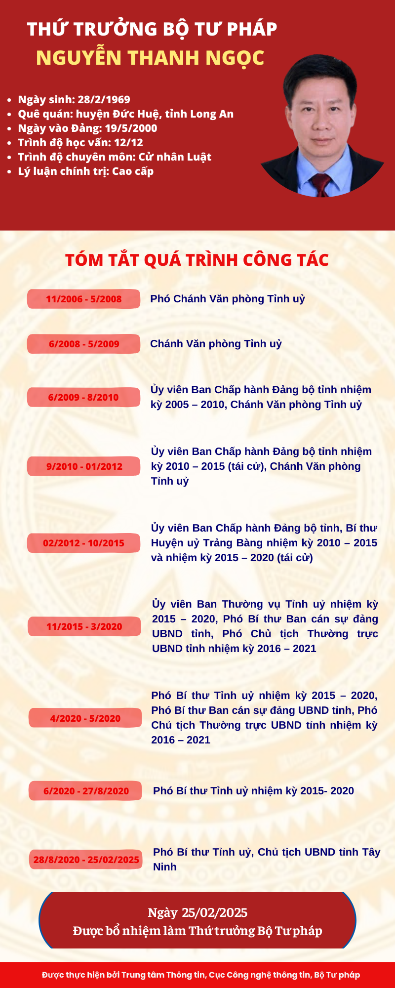 INFOGRAPHIC: Tiểu sử tân Thứ trưởng Bộ Tư pháp Nguyễn Thanh Ngọc