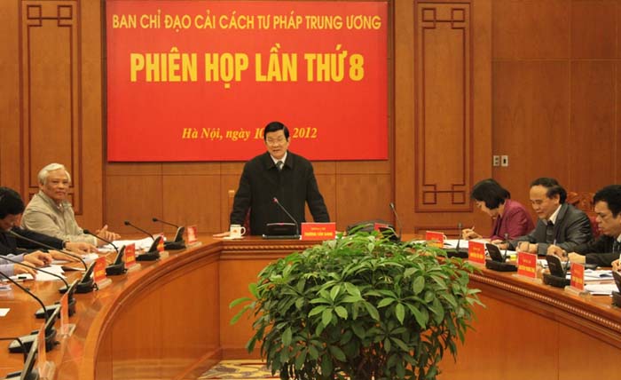 Trước những ý kiến của đại diện các Bộ, ngành, tổ chức, Chủ tịch nước Trương Tấn Sang kết luận, “Sự quan tâm của Đảng với công tác tư pháp ngày càng tăng, cơ sở vật chất, công tác cán bộ cũng đã được đầu tư dù còn hạn chế nên kết quả chưa đạt như mong muốn. Nhìn nhận được vấn đề, cần khẩn trương khắc phục để có kết quả trong nhiệm kỳ này. Một vấn đề gây băn khoăn là kinh phí đầu tư cơ sở vật chất thành lập TAND sơ thẩm và VKSND khu vực. Hiện đại ngay thì khó nên phải tận dụng tối đa trụ sở cũ của các TAND và VKSND để cải tạo, nâng cấp, mở rộng, trang bị ngay phương tiện thiết yếu cho cán bộ... và hoàn thiện dần dần”./.