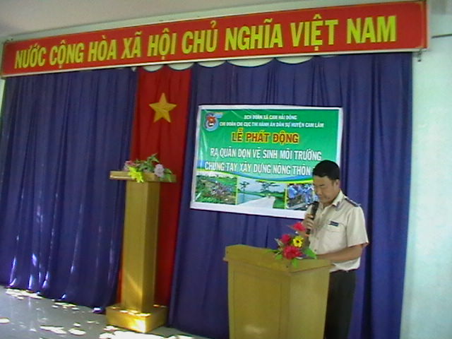 Tại huyện Cam Lâm, ngày 01/7/2016, dưới sự chủ trì của Chi cục Thi hành án dân sự huyện Cam Lâm, liên quân các cơ quan gồm Chi cục Thi hành án dân sự huyện Cam Lâm, UBND xã Cam Hải Đông, Bộ đội biên phòng thuộc Đồn biên phòng Cam Hải Đông đã tổ chức Lễ ra quân dọn vệ sinh môi trường làm sạch biển đảo quê hương tại địa bàn xã đảo Cam Hải Đông, huyện Cam Lâm, tỉnh Khánh Hòa. Ngay sau khi tổ chức Lễ ra quân, cán bộ công chức Chi cục Thi hành án dân sự huyện phối hợp với đoàn viên xã Cam Hải Đông và lực lượng đồn biên phòng Cam Hải Đông tiến hành dọn vệ sinh môi trường làm sạch 02 đoạn đường từ chân Cầu Mới đến đình làng Cam Hải Đông và từ UBND xã Cam Hải Đông đến trường tiểu học Cam Hải Đông với chiều dài hơn 3km. Các lực lượng tham gia đã tiến hành quét rác, phát ban bụi rậm, thu gom dọn rác, khai thông cống rãnh tại các đoạn đường trên trước sự chứng kiến của lãnh đạo địa phương và lãnh đạo Chi cục Thi hành án dân sự. Với tinh thần hăng say, lòng nhiệt huyết của tuổi trẻ các đoàn viên tham gia đã hoàn thành tốt công việc và được sự động viên, ủng hộ nhiệt tình của chính quyền địa phương cũng như nhân dân xã Cam Hải Đông.