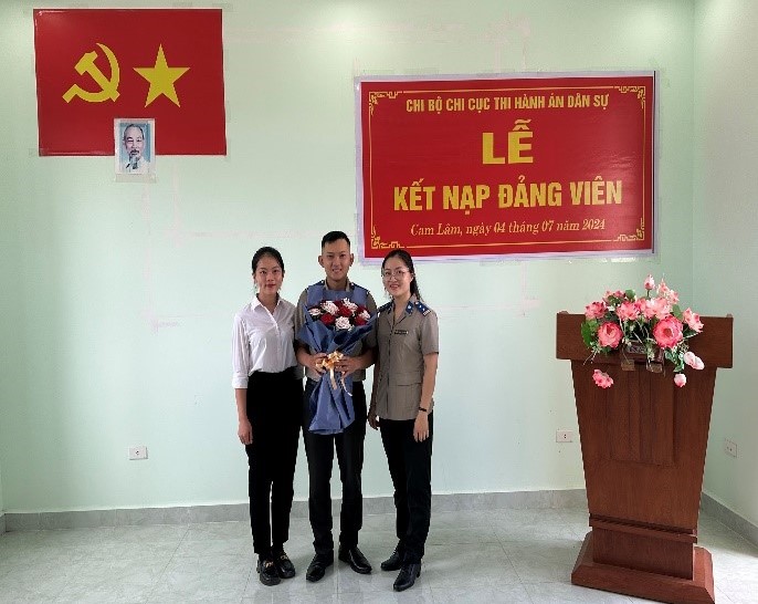 Ngày 04 tháng 7 năm 2024 Chi bộ Chi cục THADS huyện Cam Lâm long trọng tổ chức lễ kết nạp Đảng viên cho quần chúng ưu tú Nguyễn Tấn Thắng. Buổi lễ có sự tham gia của toàn thể Đảng viên của Chi bộ và đại diện Chi đoàn Viện kiểm sát nhân dân huyện Cam Lâm.