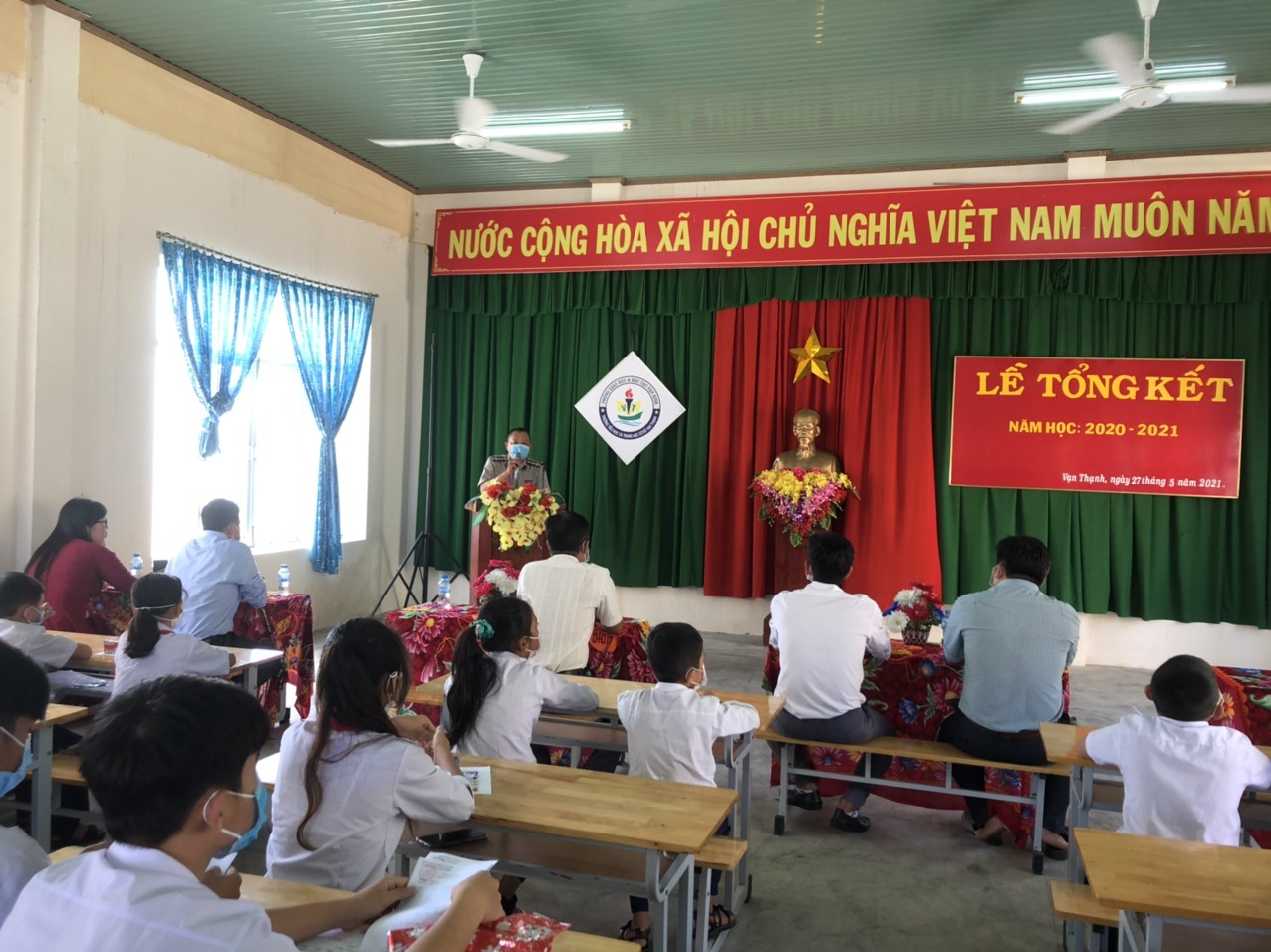 Thay mặt Ban Giám hiệu nhà trường, đồng chí Nguyễn Văn Mốt - Bí thư - Hiệu trưởng Trường Tiểu học và Trung học cơ sở Vạn Thạnh chân thành cảm ơn lãnh đạo, công chức, người lao động của Chi cục Thi hành án dân sự huyện Vạn Ninh đã dành tình cảm, sự quan tâm cho học sinh của Nhà trường, đã chung sức góp phần xây dựng nông thôn mới tại địa phương. Qua đây, đồng chí Hiệu trưởng gửi lời chúc Chi cục Thi hành án dân sự huyện Vạn Ninh hoàn thành tốt nhiệm vụ công tác năm 2021.