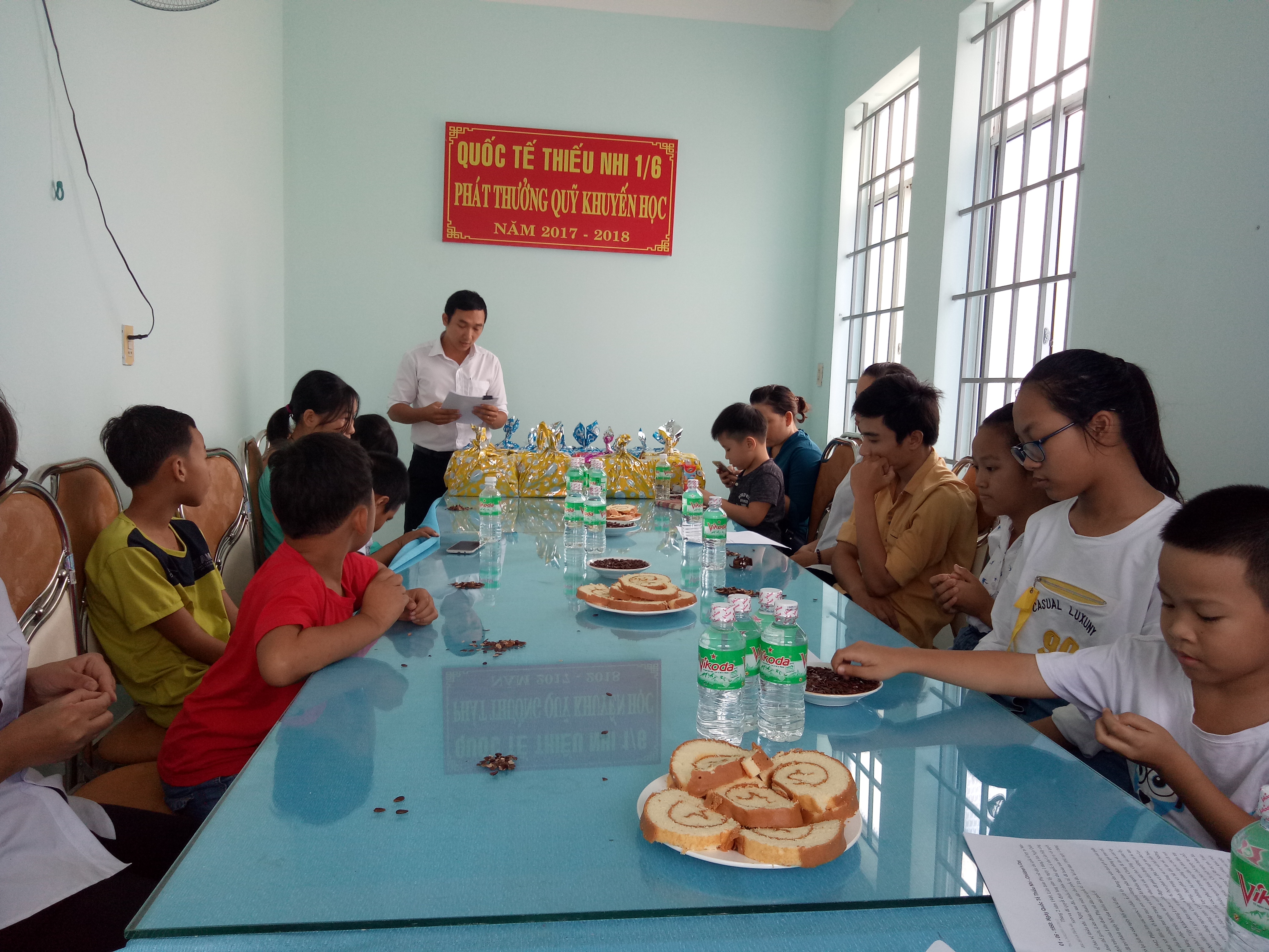 Cùng với việc phát quỹ khuyến học, đơn vị còn dành cho các cháu tổng cộng 18 phần quà ngày Quốc tế thiếu nhi gồm bánh, kẹo, sữa…mỗi suất quà trị giá 200.000đ được trích từ nguồn tiền lương của cán bộ công chức và người lao động.