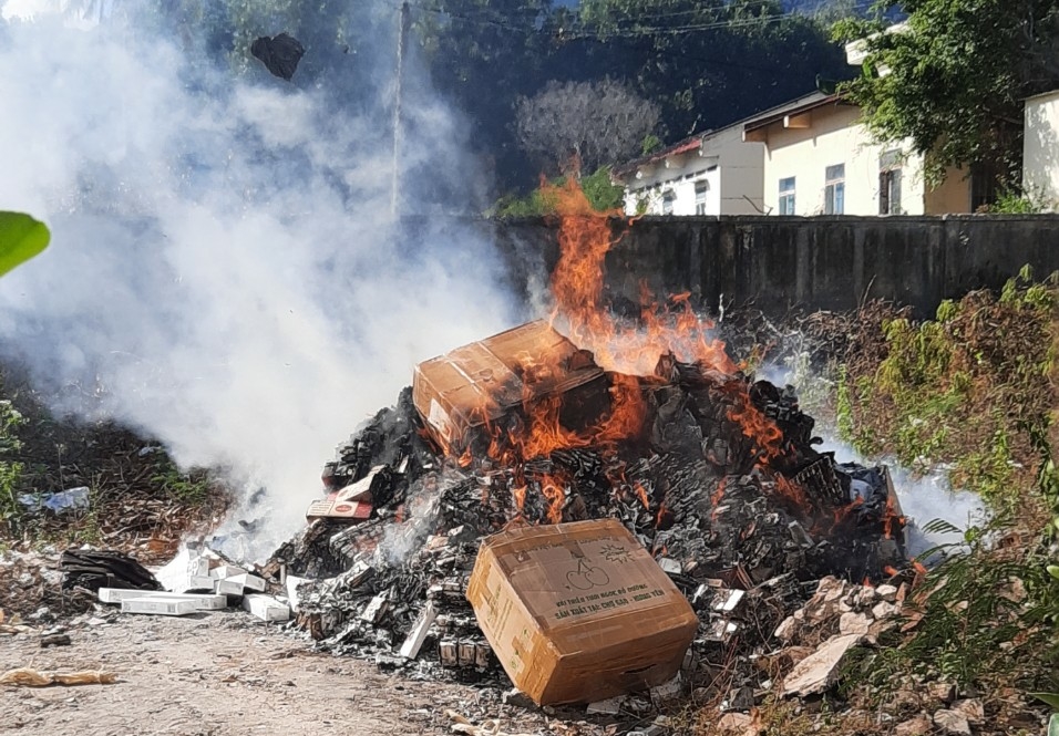 Chi cục Thi hành án dân sự thành phố Cam Ranh tổ chức tiêu hủy vật chứng là thuốc lá số lượng lớn