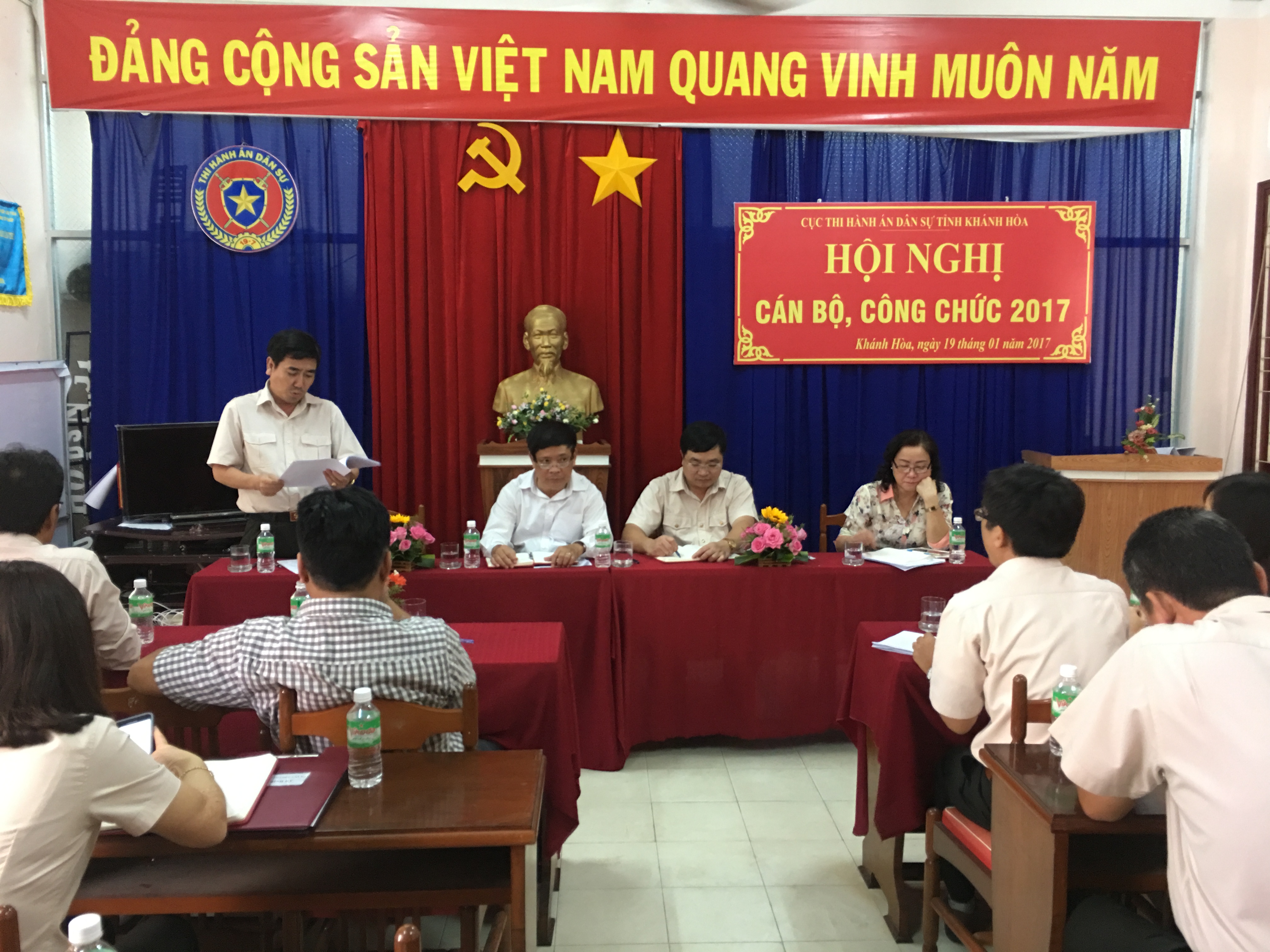 Thay mặt lãnh đạo Cục, Cục trưởng Đặng Đình Quyền đã đánh giá kết quả công tác thi hành án dân sự năm 2016 và triển khai nhiệm vụ năm 2017. Trong năm 2016, dưới sự chỉ đạo của Cấp ủy, Lãnh đạo Cục, Ban Chấp hành Công đoàn Cục cùng với sự cố gắng, nổ lực của cán bộ, công chức, người lao động, ngành Thi hành án dân sự tỉnh Khánh Hòa đã hoàn thành xuất sắc nhiệm vụ được giao, đáp ứng kịp thời nhiệm vụ chính trị của địa phương, phát huy sức mạnh trí tuệ của tập thể và thực hiện tốt quy chế dân chủ trong cơ quan, hoàn thành vượt mức kế hoạch Bộ Tư pháp, Tổng cục Thi hành án dân sự giao.