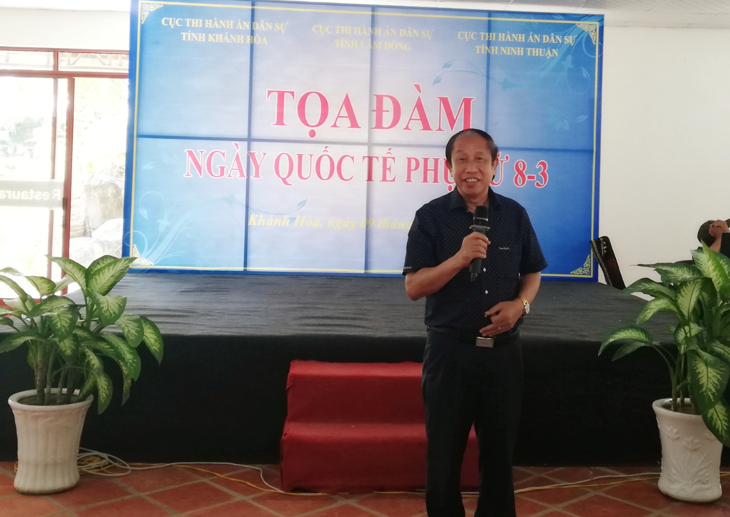Tham dự giao lưu, tọa đàm có lãnh đạo các Cục, lãnh đạo các Phòng thuộc Cục, lãnh đạo các Chi cục và công chức, người lao động thuộc 3 Cục Thi hành án dân sự Khánh Hòa, Ninh Thuận, Lâm Đồng, trong đó có sự tham gia của hơn 60 công chức, người lao động nữ. Đặc biệt, có sự tham dự của đồng chí Nguyễn Thanh Thủy - Phó Tổng cục trưởng Tổng cục Thi hành án dân sự, đồng chí Hà Công Khánh - Phó Trưởng ban Ban Nội chính Tỉnh ủy Phú Yên.