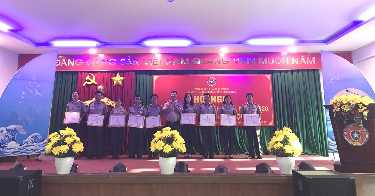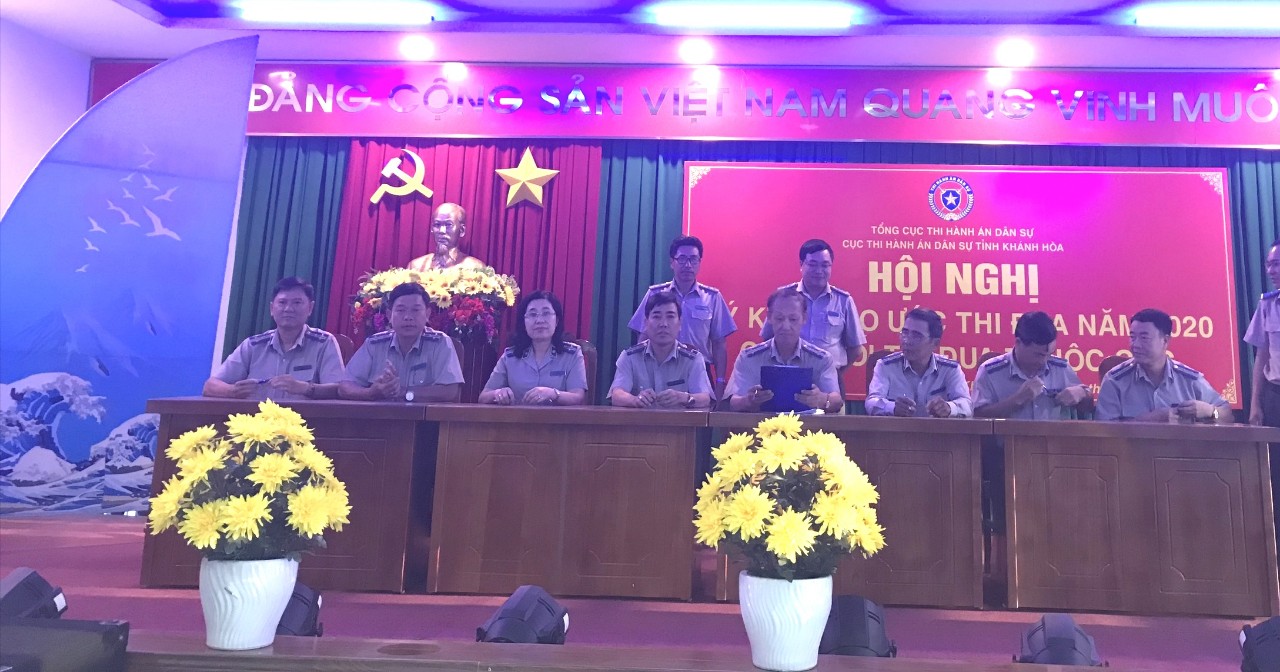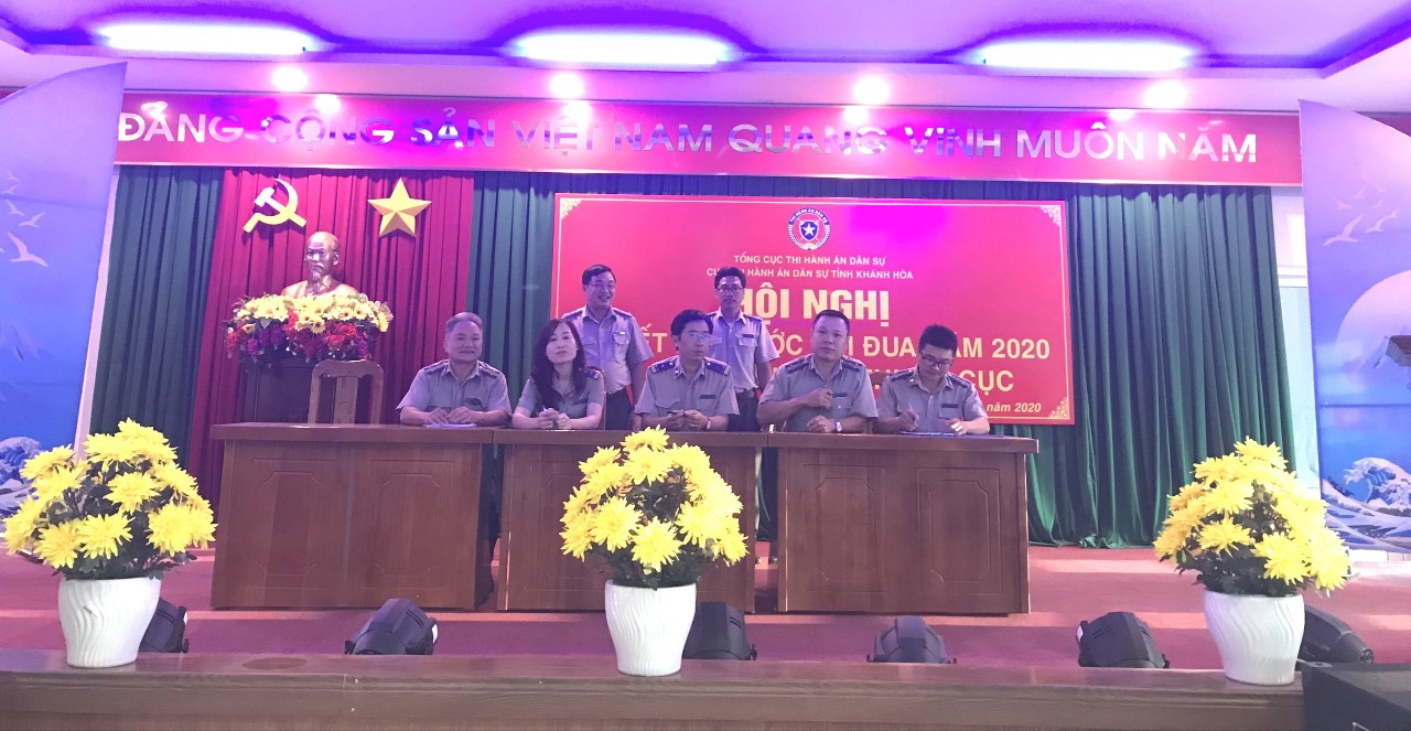 Năm 2020, Phòng Tổ chức cán bộ được Cục trưởng Cục THADS tỉnh Khánh Hòa cử làm Trưởng Khối thi đua các Phòng thuộc Cục, Chi cục THADS huyện Cam Lâm được cử làm Trưởng Khối thi đua các Chi cục. Tại Hội nghị, 02 Khối thi đua đều đăng ký hoàn thành các chỉ tiêu, nhiệm vụ thi hành án dân sự, theo dõi hành chính được giao năm 2020; đăng ký phấn đấu 100% công chức, người lao động đạt danh hiệu “Lao động tiên tiến”; trong đó có “Chiến sỹ thi đua cơ sở”, “Chiến sỹ thi đua Ngành Tư pháp” và cá nhân được Giấy khen của Cục trưởng, Bằng khen của Bộ trưởng Bộ Tư pháp; 100% tập thể các đơn vị thuộc Cục đạt danh hiệu “Tập thể lao động tiên tiến”; trong đó có tập thể đạt “Tập thể lao động xuất sắc”, “Cờ thi đua của Bộ Tư pháp” (đối với Khối các Chi cục) và được xét tặng Bằng khen của Bộ trưởng Bộ Tư pháp.