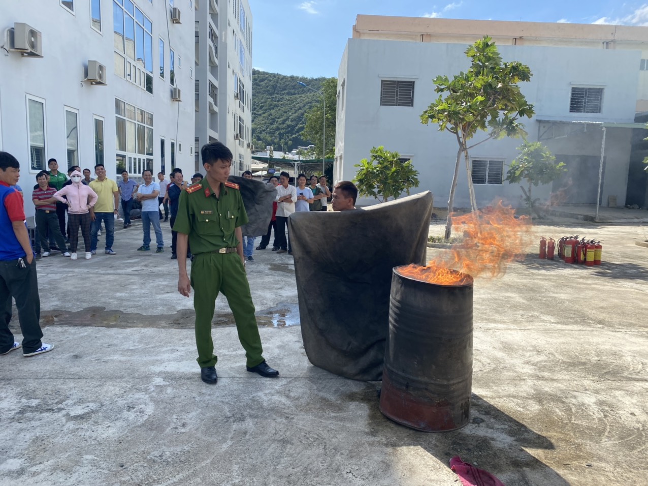 Một số hình ảnh thực hành chữa cháy tại trụ sở Cục THADS tỉnh Khánh Hòa