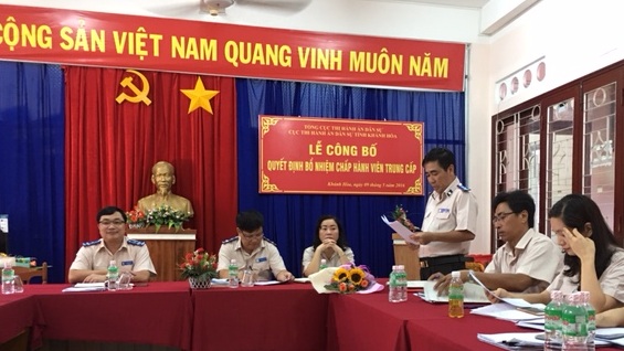 Thừa ủy quyền của Bộ trưởng Bộ Tư pháp, Cục trưởng Đặng Đình Quyền đã trao quyết định bổ nhiệm Chấp hành viên trung cấp cho các đồng chí Lê Mạnh Hùng - Chánh Văn phòng Cục, Dương Diêu - Phó Trưởng phòng phụ trách Phòng Nghiệp vụ và tổ chức thi hành án và Lê Quang Hòa - Chi cục trưởng Chi cục Thi hành án dân sự thị xã Ninh Hòa.
