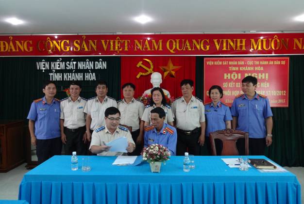 Hai ngành Viện kiểm sát và Thi hành án dân sự trên địa bàn tỉnh Khánh Hòa đã có sự phối hợp chặt chẽ trong công tác thi hành án dân sự, tạo điều kiện trong việc lập hồ sơ theo quy định, đạt hiệu quả trong công tác; có sự nghiên cứu trao đổi thống nhất trước khi tiến hành tổ chức cưỡng chế, giải quyết đơn khiếu nại, tố cáo của đương sự đối với các vụ việc có tính chất phức tạp, vướng mắc, kịp thời trả lời thỉnh thị của cấp dưới…