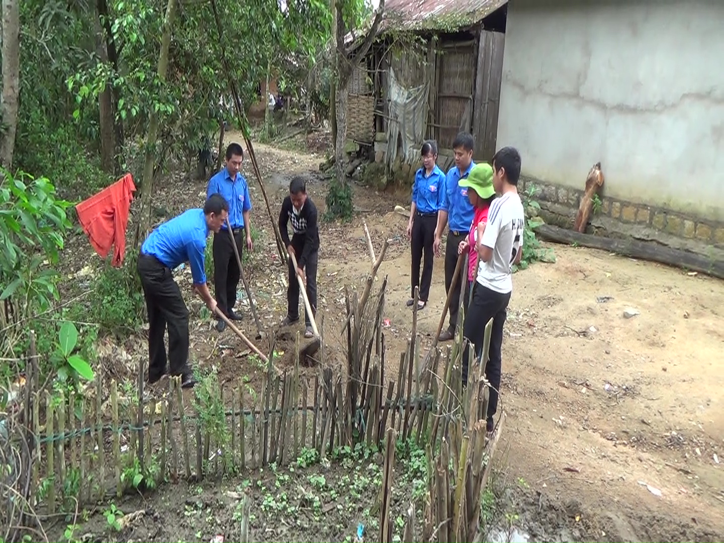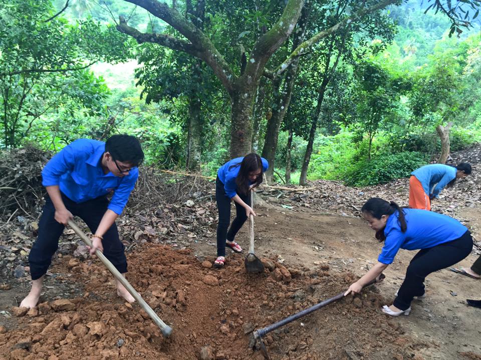 Sau khi tặng quà Tết cho các gia đình đặc biệt khó khăn, đoàn viên thanh niên của ba Chi đoàn đã thực hiện việc đào các hố rác giúp các hộ gia đình neo đơn của xã Giang Ly.