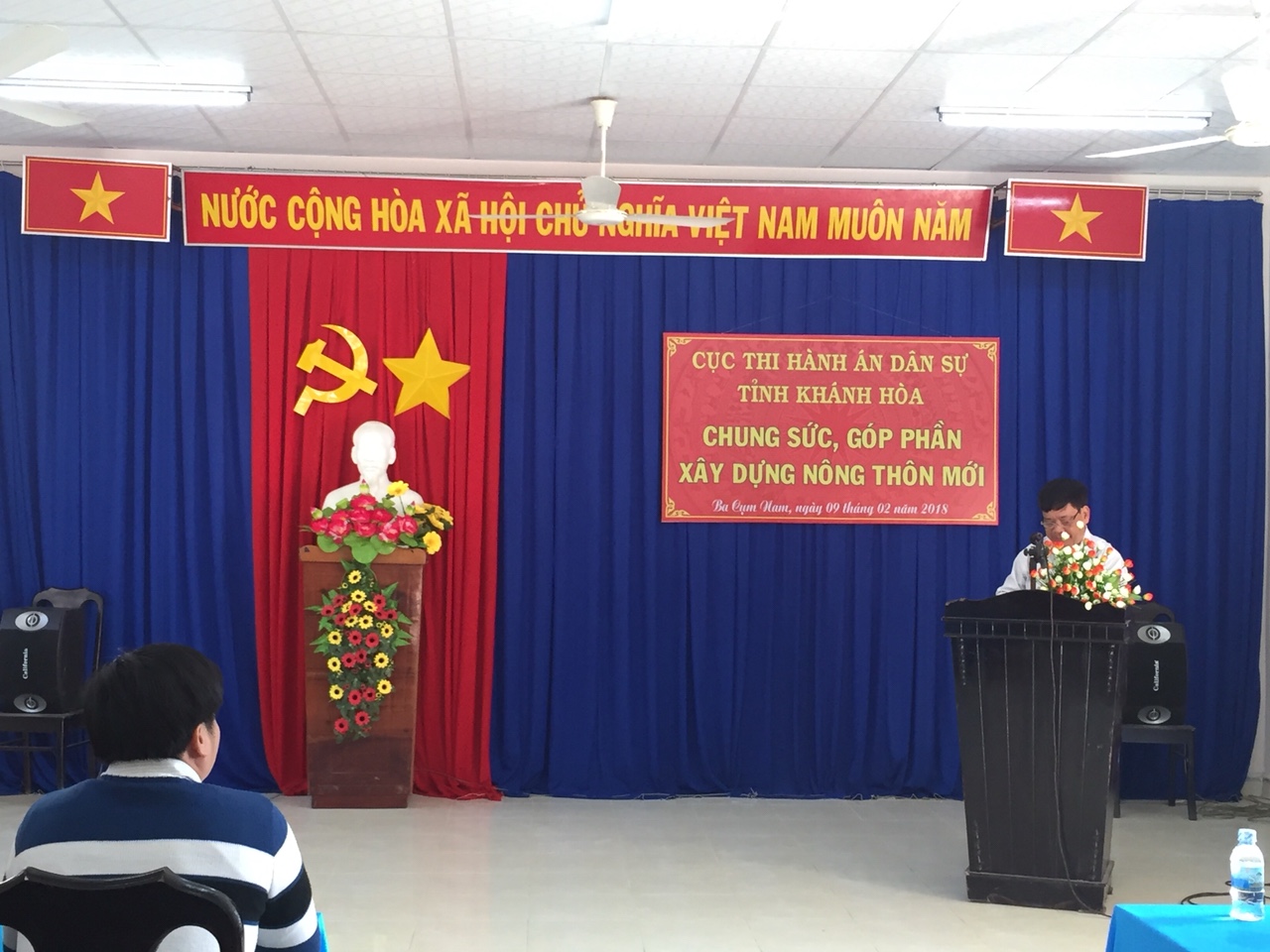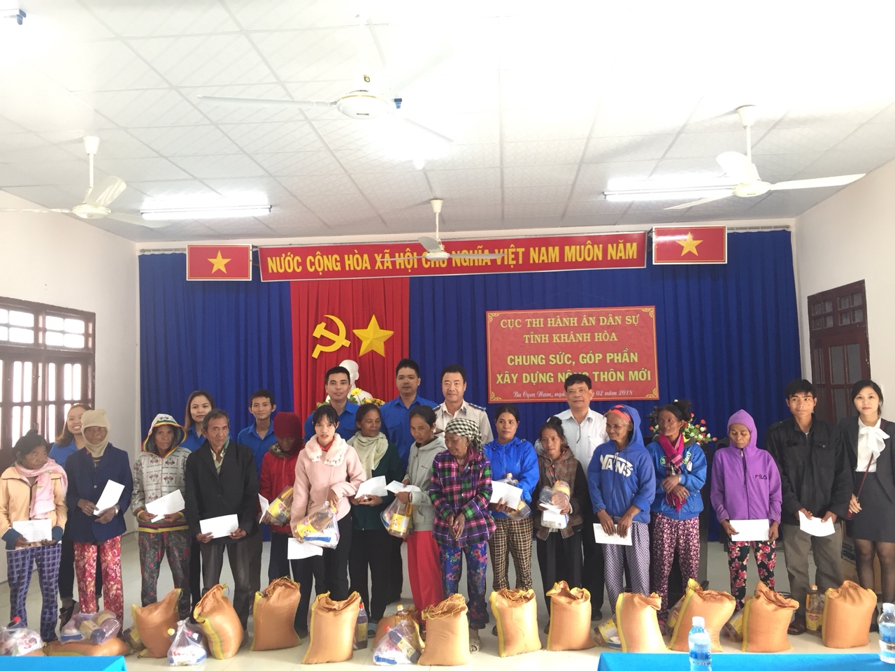 Nhân dịp chuẩn bị đón xuân Mậu Tuất năm 2018; Tiếp tục hoạt động đẩy mạnh thực hiện phong trào thi đua “Ngành Tư pháp chung sức góp phần xây dựng nông thôn mới” giai đoạn 2016-2020 do Bộ Tư pháp, Tổng cục Thi hành án dân sự và Ủy ban nhân dân tỉnh phát động; Với mong muốn mang đến cho những người có hoàn cảnh khó khăn có một cái tết đầm ấm hơn. Cục Thi hành án dân sự tỉnh Khánh Hòa đã có nhiều hoạt động ý nghĩa để góp phần xây dựng nông thôn mới, trong đó đã tổ chức buổi gặp mặt, trao tặng 15 suất quà tết Mậu Tuất cho các hộ gia đình thuộc diện đặc biệt khó khăn tại xã Ba Cụm Nam, huyện Khánh Sơn, tỉnh Khánh Hòa với trị giá 15 triệu đồng vào ngày 09/02/2018.