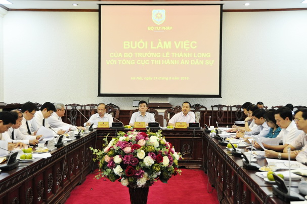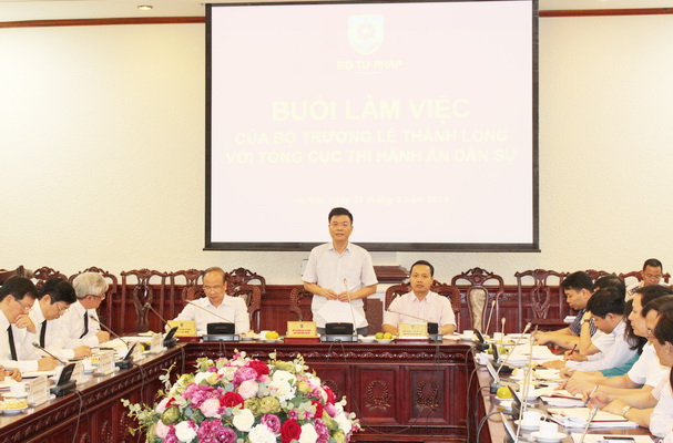 Đó là chỉ đạo của Bộ trưởng Lê Thành Long tại cuộc làm việc với Tổng cục Thi hành án dân sự chiều 31/5. Các Thứ trưởng Phan Chí Hiếu, Trần Tiến Dũng, Tổng cục trưởng Hoàng Sỹ Thành cùng các Phó Tổng cục trưởng, lãnh đạo các đơn vị thuộc Bộ đã tham dự buổi làm việc.