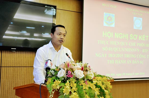 Phát biểu kết luận cuộc họp, Thứ trưởng Bộ Tư pháp Trần Tiến Dũng đánh giá cao những kết quả sau thời gian thực hiện Quy chế 01 và nhấn mạnh ”Quy chế đã đi vào đời sống”. Tuy nhiên, Thứ trưởng cũng chỉ rõ những tồn tại như số tiền, việc tồn đọng còn nhiều, nhận thức của một số cơ quan THADS còn hạn chế, một số tổ chức tín dụng còn lúng túng trong nhận lại tài sản thế chấp... Chỉ rõ các nguyên nhân, trong đó lưu ý những nguyên nhân chủ quan, Thứ trưởng Trần Tiến Dũng nhấn mạnh, trong bối cảnh thực hiện mục tiêu của Chính phủ hành động, một Chính phủ kiến tạo, đồng hành cùng doanh nghiệp, phục vụ nhân dân thì Bộ Tư pháp và NHNN cùng phải nỗ lực hơn nữa trong việc tìm các giải pháp tháo gỡ khó khăn.