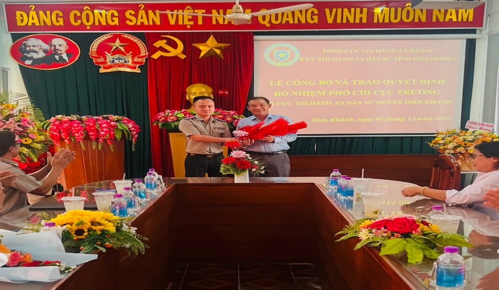 Ngày 01/12/2022, Cục Thi hành án dân sự tỉnh Khánh Hòa tổ chức Lễ công bố và trao Quyết định bổ nhiệm Phó Chi cục trưởng Chi cục Thi hành án dân sự huyện Diên Khánh