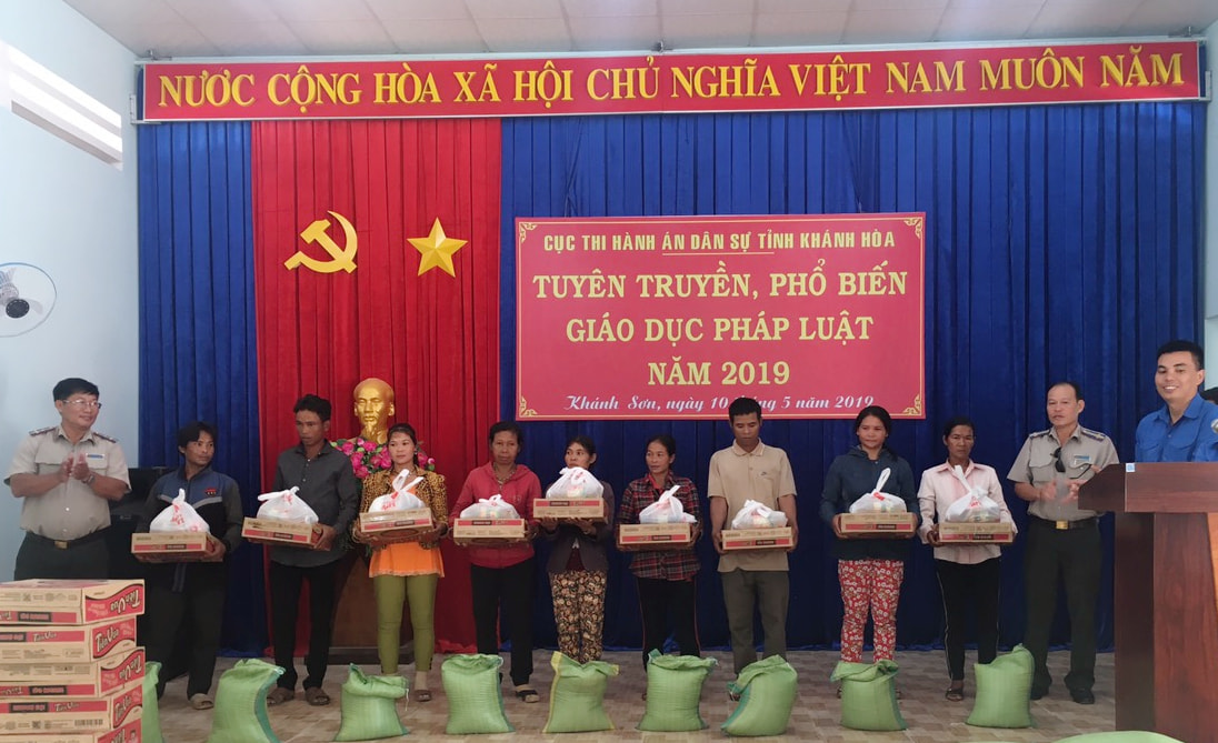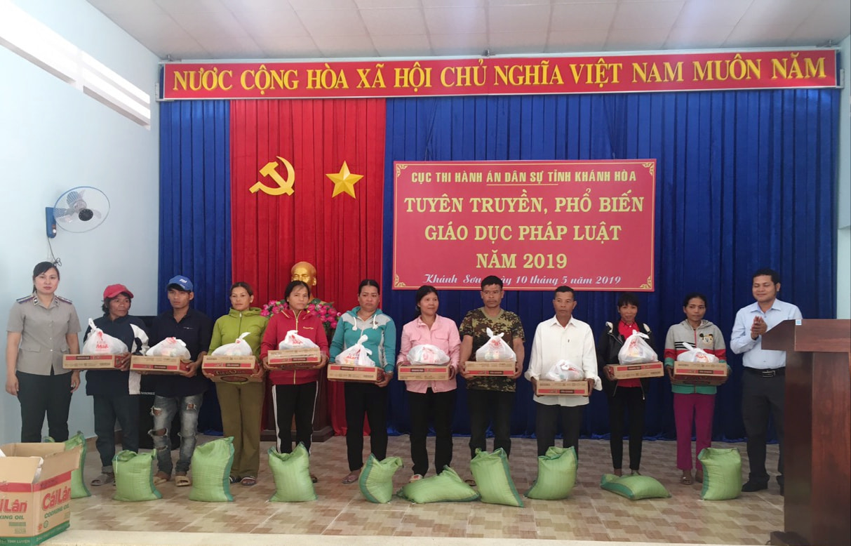 Tiếp tục thực hiện chương trình “Ngành Tư pháp chung sức góp phần xây dựng nông thôn mới giai đoạn 2016-2020”, hướng tới kỷ niệm 73 năm Ngày truyền thống Thi hành án dân sự (19/7/1946-19/7/2019), Cục Thi hành án dân sự tỉnh Khánh Hòa đã trao tặng 400kg gạo và 40 phần quà cho người dân có hoàn cảnh đặc biệt khó khăn tại xã Thành Sơn, huyện Khánh Sơn.