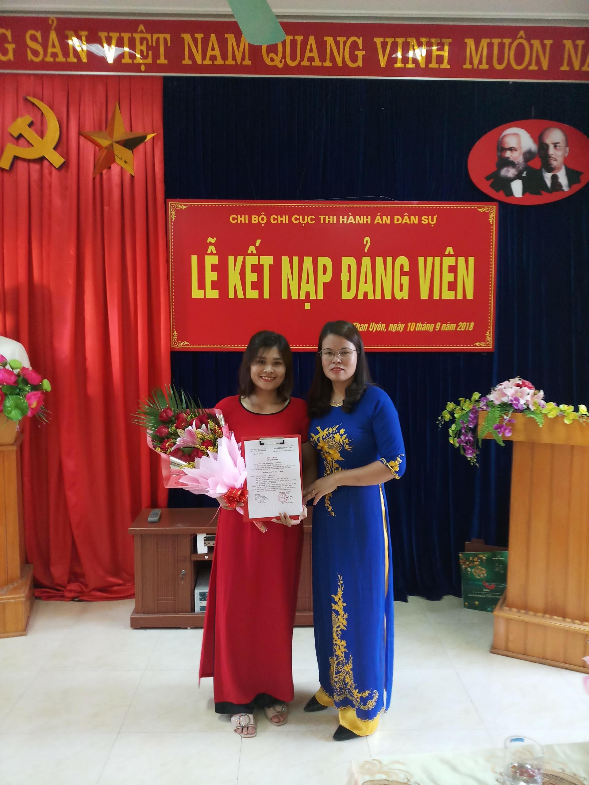 Chiều ngày 10/9/2018 Chi bộ Chi cục Thi hành án dân sự huyện Than Uyên long trọng tổ chức Lễ kết nạp đảng viên mới cho quần chúng Lừ Thị Thơ - Nhân viên Chi cục Thi hành án dân sự huyện vào Đảng Cộng sản Việt Nam.