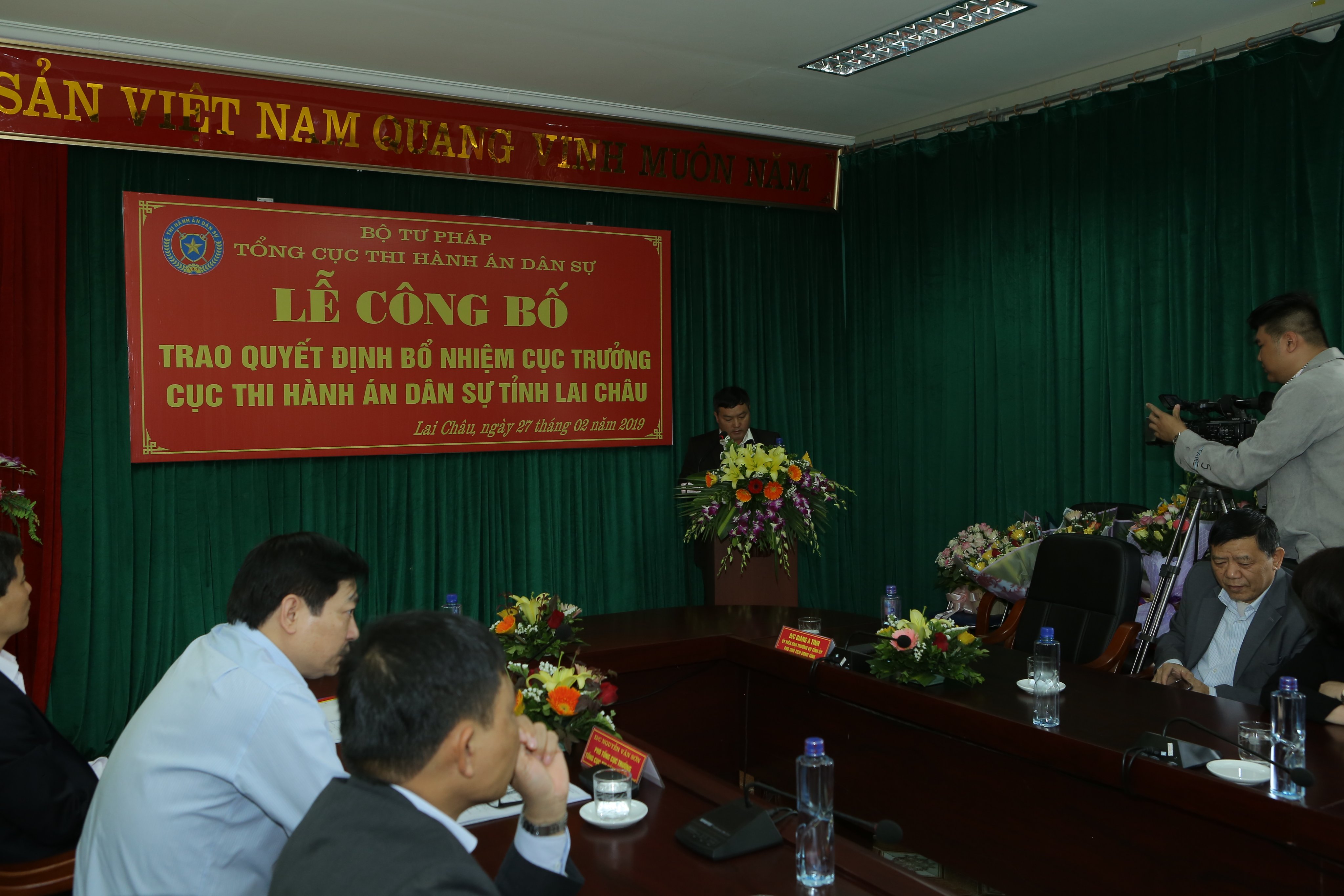 Tại buổi lễ, đồng chí Phạm Thành Trung, Phó vụ trưởng Vụ Tổ chức cán bộ Tổng cục Thi hành án dân sự đã công bố quyết định 418/QĐ-BTP ngày 14/02/2019 về việc bổ nhiệm đồng chí Trần Công Hướng giữ chức vụ Cục trưởng Cục trưởng Cục THADS tỉnh Lai Châu kể từ ngày 01/3/2019.