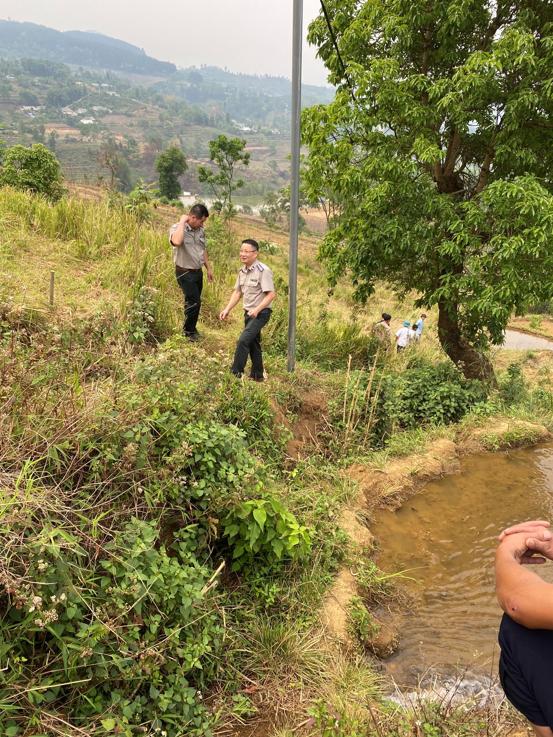 Chấp hành viên cục THADS tỉnh Lai Châu cắm mốc xác định vị trí đất để bàn giao