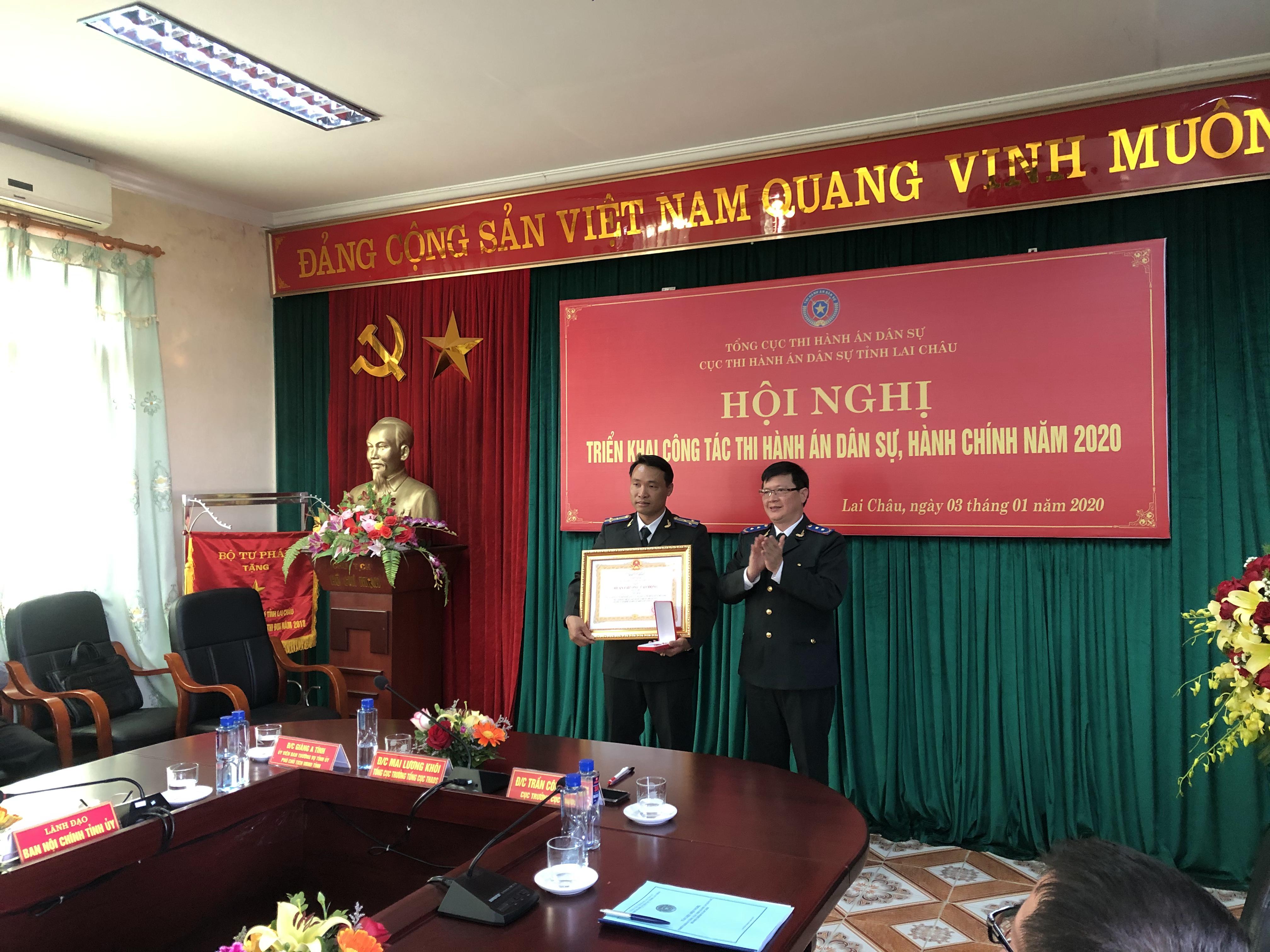 Chiều ngày 03/01/2020, Cục Thi hành án dân sự tỉnh tổ chức Hội nghị triển khai công tác thi hành án dân sự, hành chính năm 2020. Dự và chỉ đạo Hội nghị: về phía Tổng cục Thi hành án dân sự có đồng chí Mai Lương Khôi - Tổng cục trưởng Tổng cục thi hành án dân sự; các đồng chí Chánh Văn phòng Tổng cục Thi hành án dân sự; Vụ trưởng các vụ: Tổ chức cán bộ, Nghiệp vụ 2, Giải quyết khiếu nại tố cáo, Tổng cục Thi hành án dân sự. Về phía UBND tỉnh có đồng chí Giàng A Tính - Uỷ viên Ban Thường vụ Tỉnh uỷ, Phó Chủ tịch UBND tỉnh. Dự Hội nghị còn có các đồng chí Lãnh đạo Ban Nội chính Tỉnh ủy, Lãnh đạo các cơ quan: Văn phòng UBND tỉnh, Công an, Tòa án nhân dân, Viện Kiểm sát nhân dân, Sở Tư pháp, Sở Tài nguyên và Môi trường; Ngân hàng Nhà nước Chi nhánh tỉnh; Bảo hiểm xã hội tỉnh; Đồng chí Lê Anh Tuấn - Cục trưởng Cục THADS tỉnh Lào Cai; Tập thể lãnh đạo Cục THADS tỉnh, Lãnh đạo các Phòng chuyên môn, Chi cục THADS trực thuộc; chấp hành viên, thẩm tra viên, thư ký thi hành án các cơ quan THADS ...