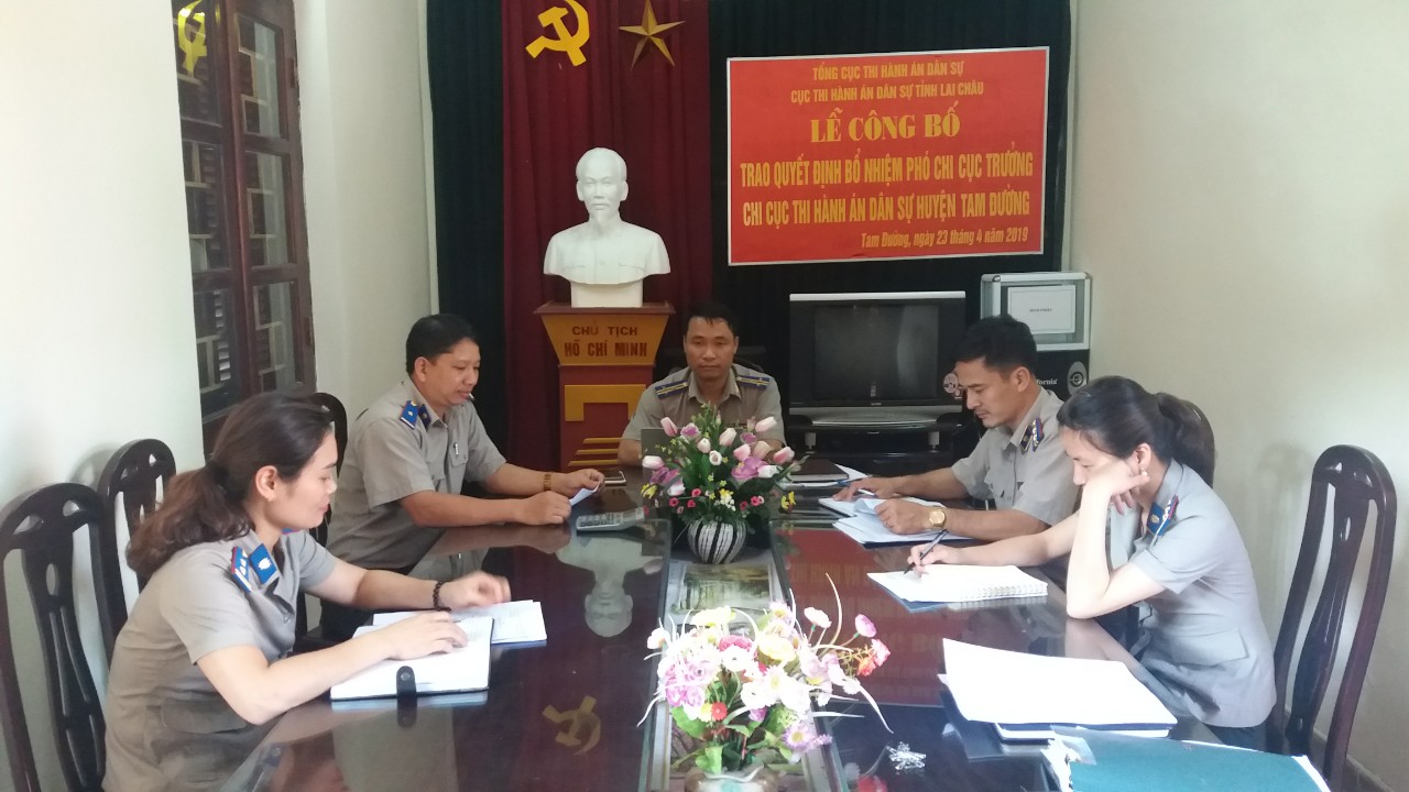 Theo Kế hoạch kiểm tra, Sáng ngày 21/5/2019, tại Chi cục THADS huyện Tam Đường, đồng chí Lại Hữu Đồng, Phó Cục trưởng, Trưởng Đoàn kiểm tra đã công bố quyết định và kế hoạch kiểm tra toàn diện công tác thi hành án dân sự, hành chính kể từ 01/10/2018 đến ngày 21/5/2019. Nội dung kiểm tra về công tác tổ chức cán bộ; Công tác văn phòng; Hoạt động nghiệp vụ thi hành án; Công tác tiếp dân, xử lý đơn thư, giải quyết khiếu nại, tố cáo, đề nghị, kiến nghị, phản ánh về thi hành án dân sự; Việc khắc phục vi phạm theo Kết luận kiểm tra, giám sát của các cơ quan có thẩm quyền và kiến nghị, kháng nghị của Viện kiểm sát nhân dân năm 2018; Một số nội dung khác liên quan đến hoạt động của đơn vị, đồng thời đề nghị Chi cục THADS huyện Tam Đường phối hợp, tạo điều kiện thuận lợi để Đoàn thực hiện tốt nhiệm vụ kiểm tra.