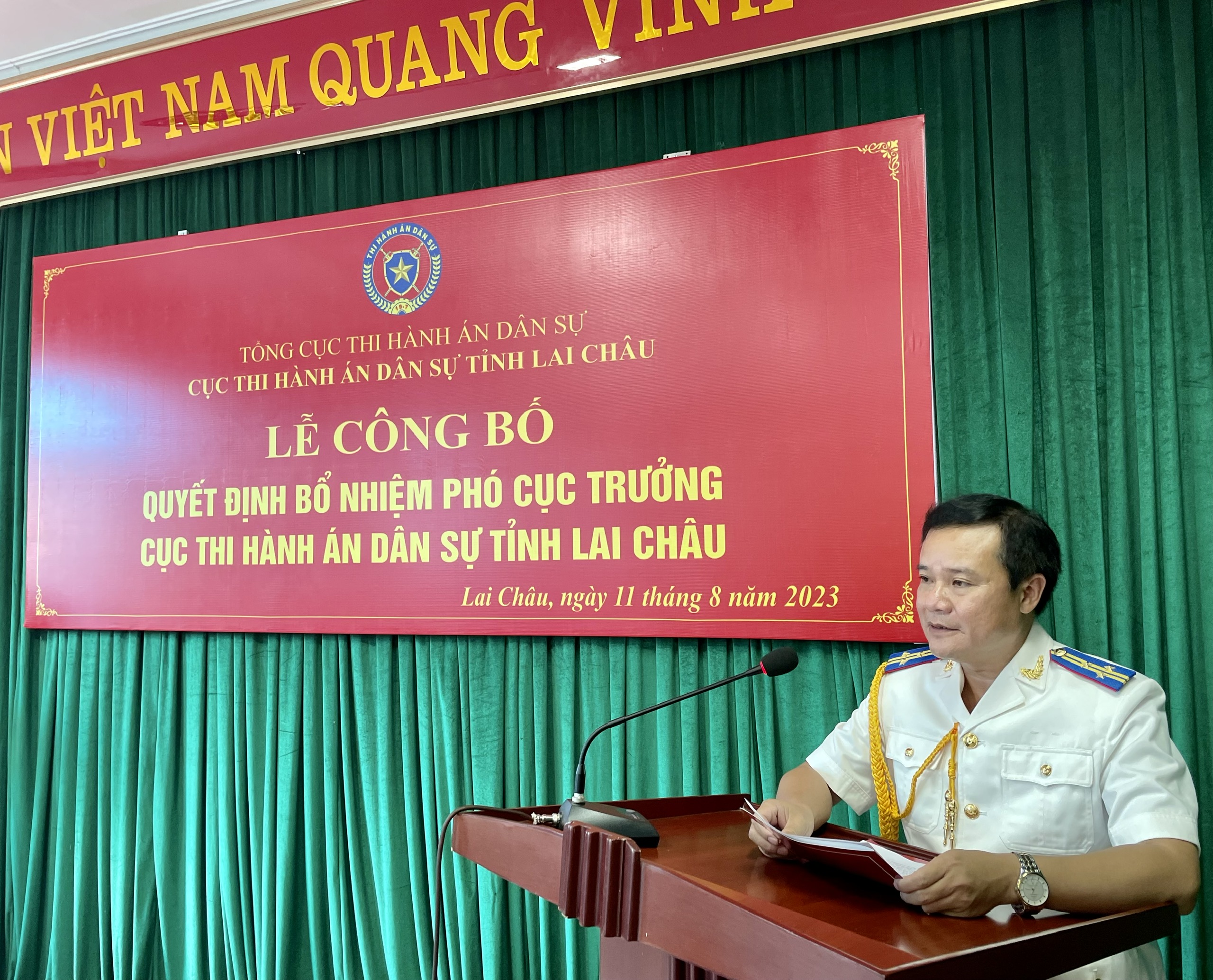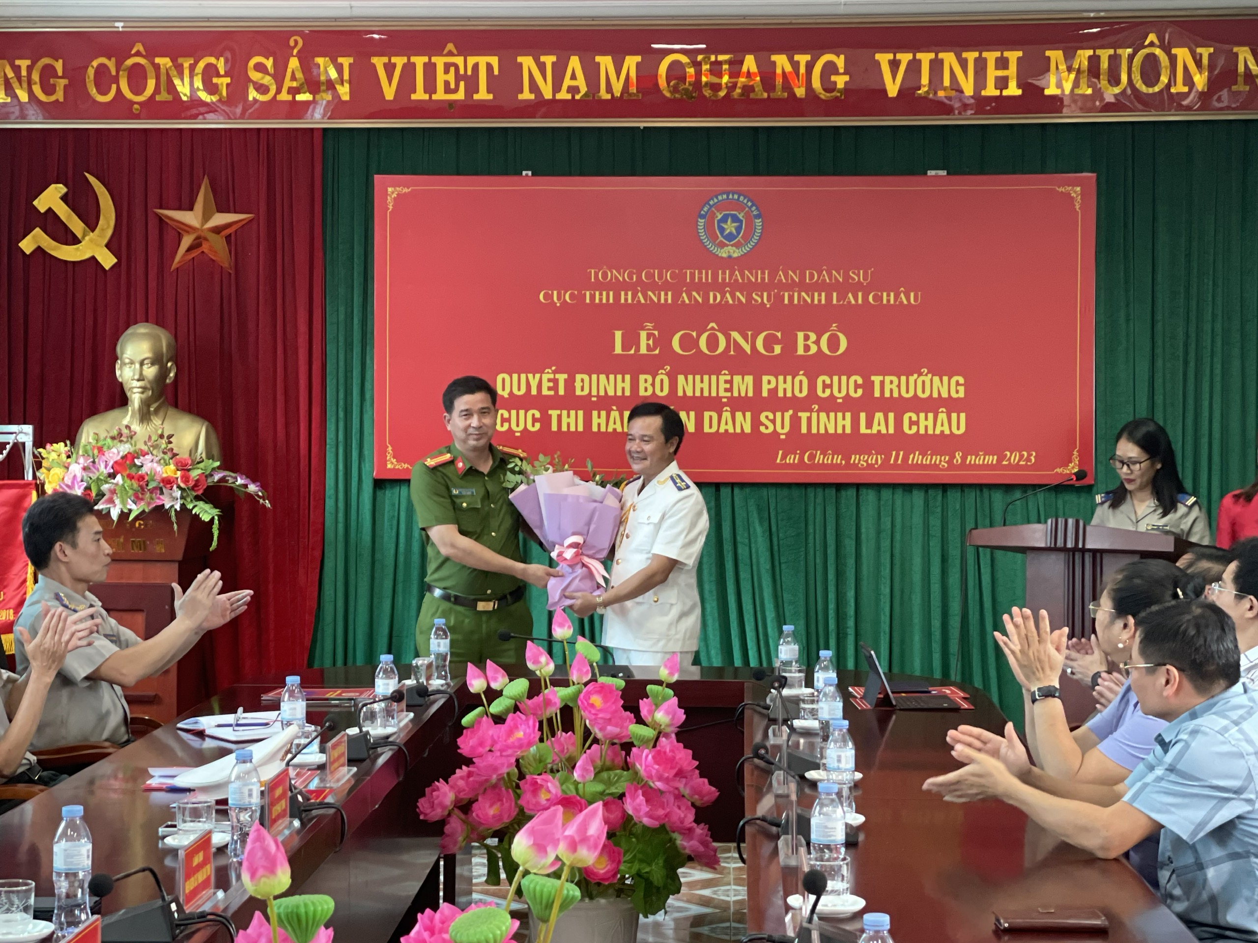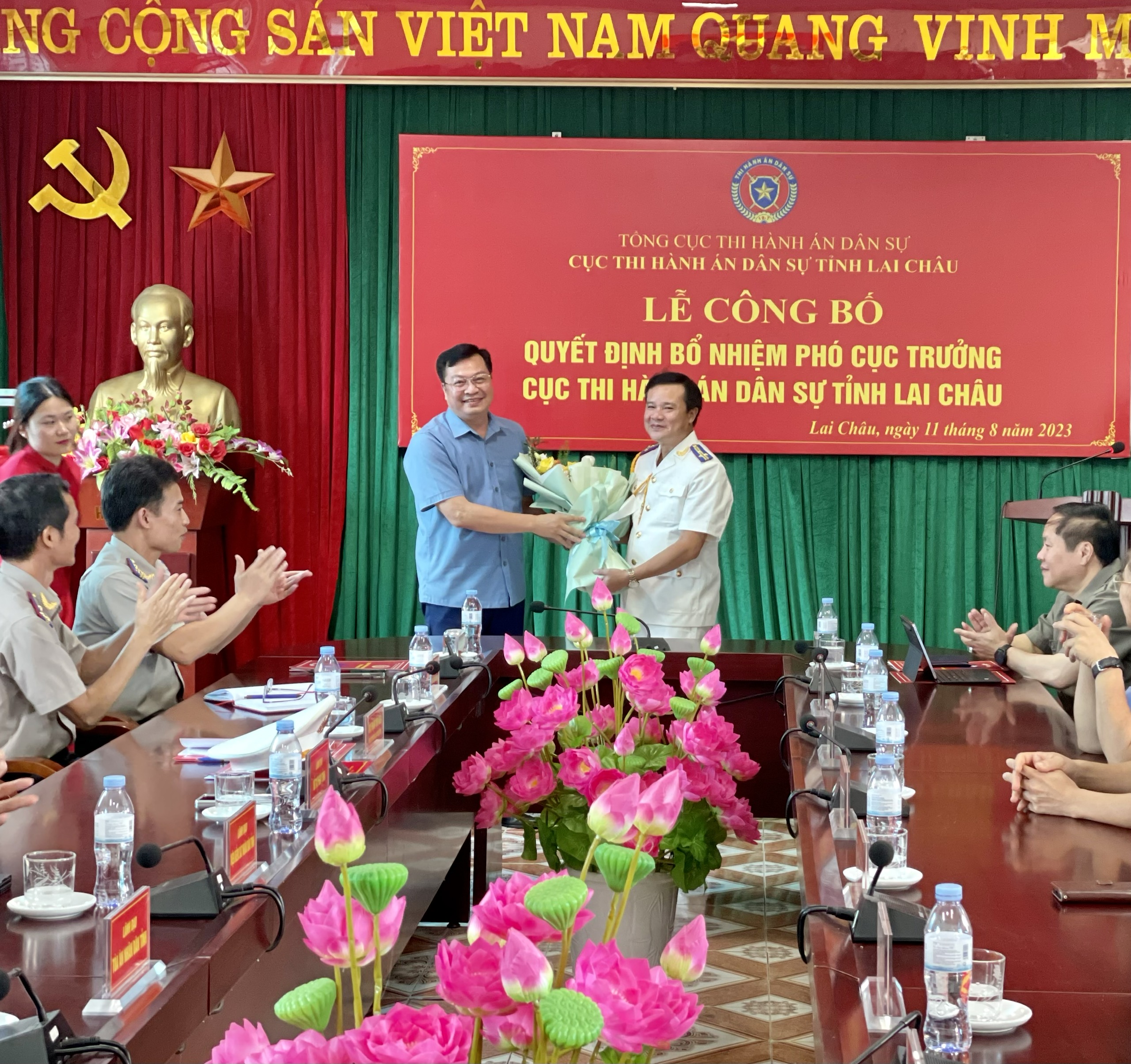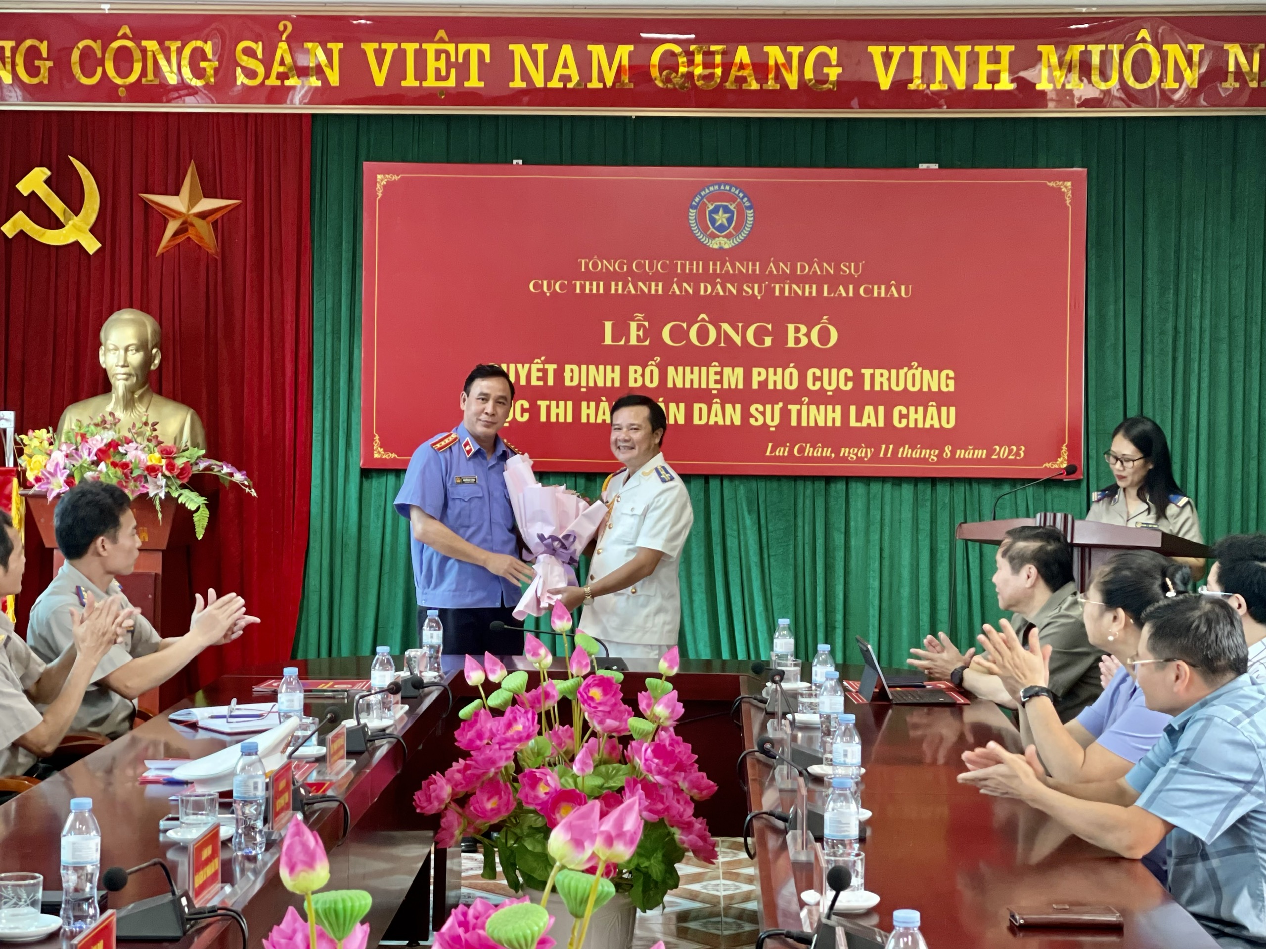 Thừa ủy quyền của Tổng cục Thi hành án dân sự, chiều ngày 11 tháng 8 năm 2023, Cục Thi hành án dân sự tỉnh Lai Châu đã long trọng tổ chức Lễ công bố Quyết định bổ nhiệm chức vụ Phó cục trưởng đối với đồng chí Phạm Văn Hiển.