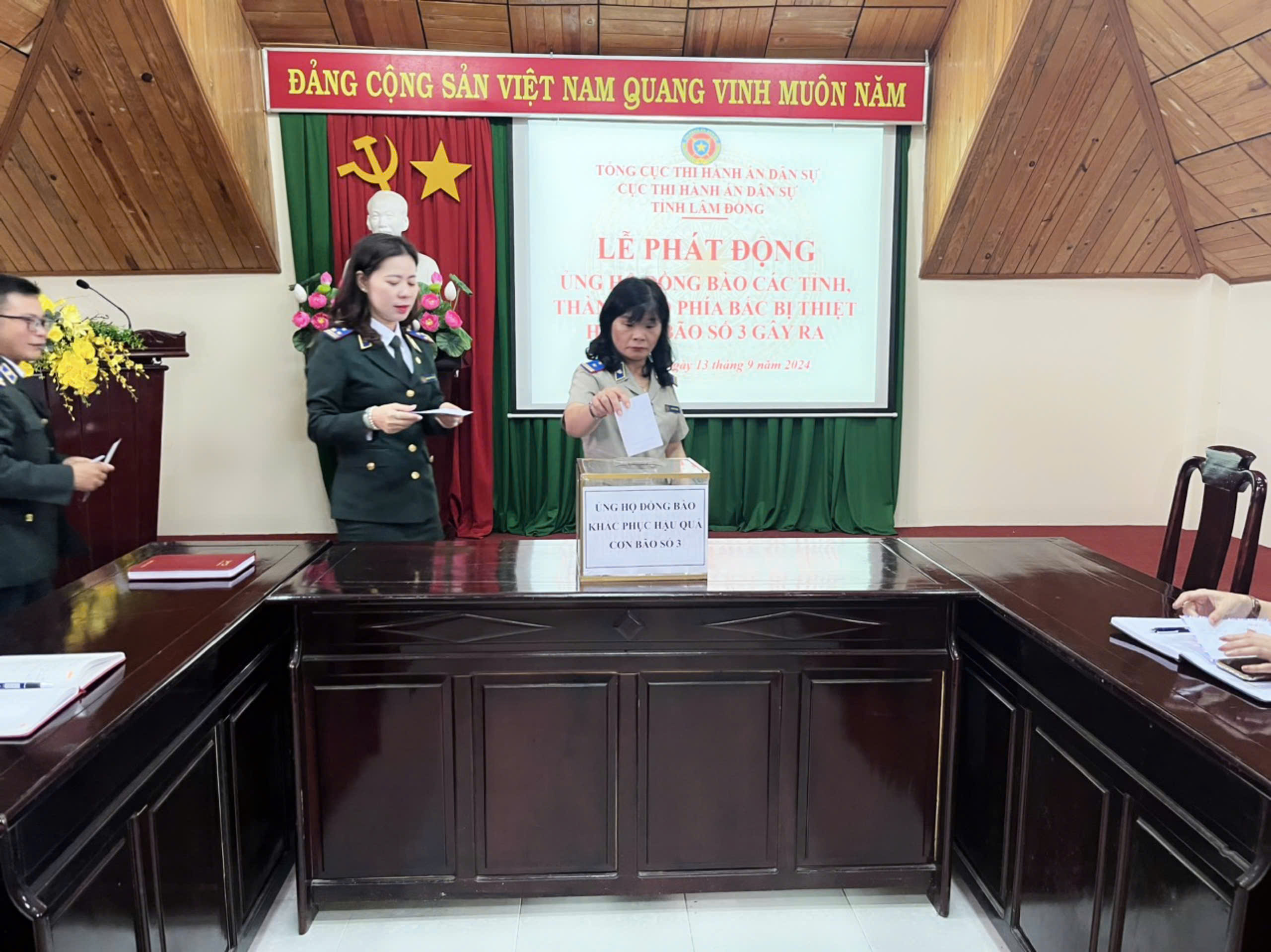Hưởng ứng lời kêu gọi của Ủy ban Mặt trận Tổ quốc Việt Nam tỉnh Lâm Đồng và Tổng cục Thi hành án dân sự (THADS) Bộ Tư pháp, chiều ngày 13/9/2024, Cục THADS tỉnh Lâm Đồng tổ chức phát động ủng hộ đồng bào khắc phục cơn bão số 3.