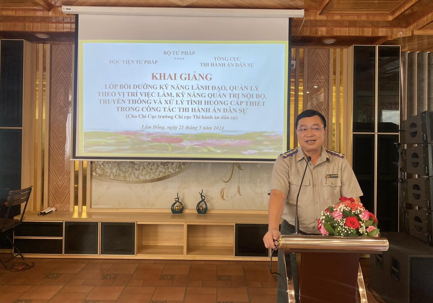 Ngày 21/5/2024, Học viện Tư pháp khai giảng Lớp bồi dưỡng kiến thức, kỹ năng lãnh đạo, quản lý theo vị trí việc làm, kỹ năng quản trị nội bộ, truyền thông và xử lý tình huống cấp thiết trong công tác thi hành án dân sự (cho Chi cục trưởng và tương đương) - Lớp thứ sáu tổ chức tại tỉnh Lâm Đồng.