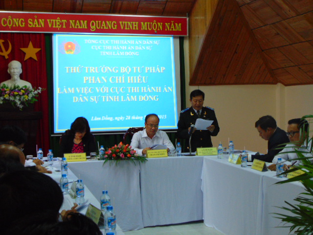 Thứ trưởng Bộ tư pháp – Phan Chí Hiếu làm việc với Cục Thi hành án dân sự tỉnh Lâm Đồng về Công tác thi đua khen thưởng và tình hình thực hiện chỉ tiêu, nhiệm vụ năm 2015.
