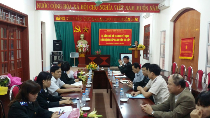 Ngày 23/11/2016, Cục Thi hành án dân sự tỉnh Lạng Sơn đã tổ chức Lễ công bố và trao quyết định bổ nhiệm Chấp hành viên sơ cấp cho 04 đồng chí theo Quyết định bổ nhiệm của Bộ Tư pháp. Dự lễ công bố có đồng chí Đỗ Xuân Hợi - Cục trưởng, các đồng chí Phó cục trưởng, lãnh đạo các phòng chuyên môn thuộc Cục; Chi cục trưởng Chi cục THADS huyện Hữu Lũng, Văn Quan.