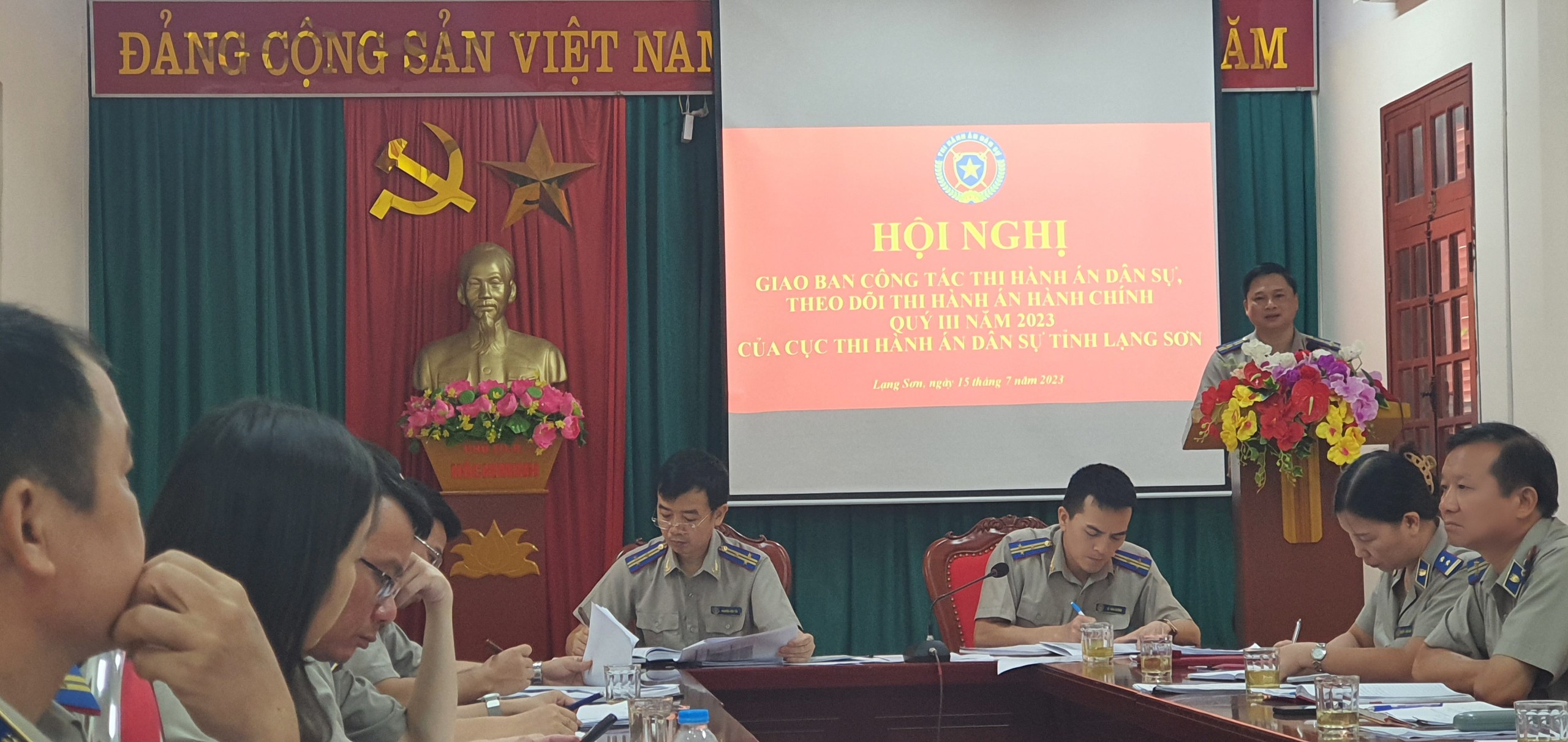 Tại hội nghị đã được nghe đồng chí Lê Văn Cường, Phó Cục trưởng thông qua báo cáo kết quả công tác thi hành án dân sự, theo dõi thi hành án hành chính 9 tháng đầu năm 2023, phương hướng, nhiệm vụ tháng 7 năm 2023.