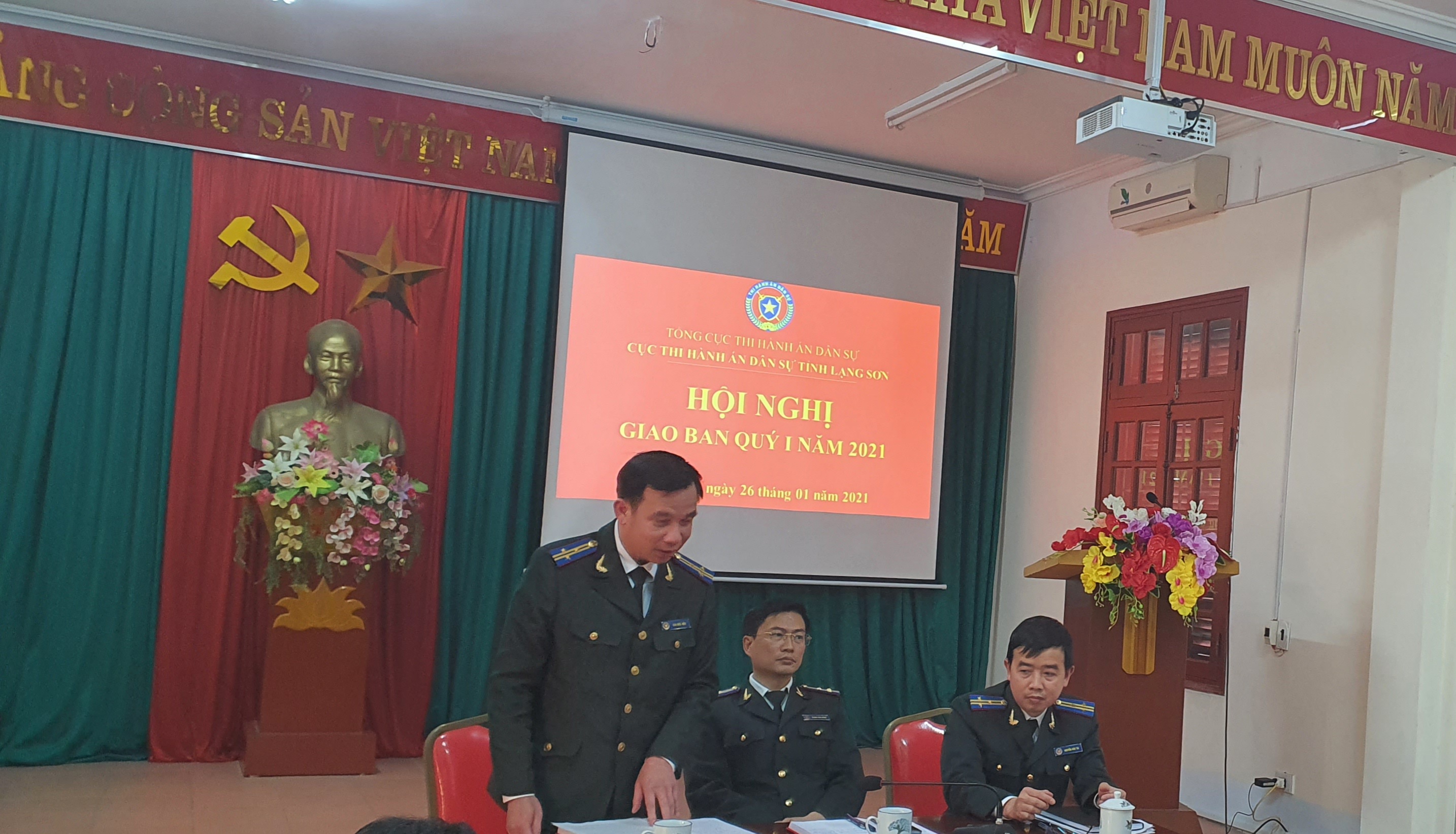 Ngày 26/01/2021, Cục THADS tỉnh Lạng Sơn tổ chức Hội nghị giao ban công tác THADS Quý I năm 2021. Dự và chủ trì Hội nghị có đồng chí Phạm Văn Dũng – Cục trưởng Cục THADS tỉnh Lạng Sơn. Tham dự Hội nghị có các đồng chí Phó Cục trưởng, Lãnh đạo các phòng chuyên môn và Kế toán thuộc Cục, Lãnh đạo và Kế toán thuộc Chi cục THADS 11 huyện, thành phố. Hội nghị nghe trình bày Báo cáo kết quả công tác THADS Quý I năm 2021; phương hướng, nhiệm vụ tháng 01 năm 2021 và các ý kiến thảo luận.