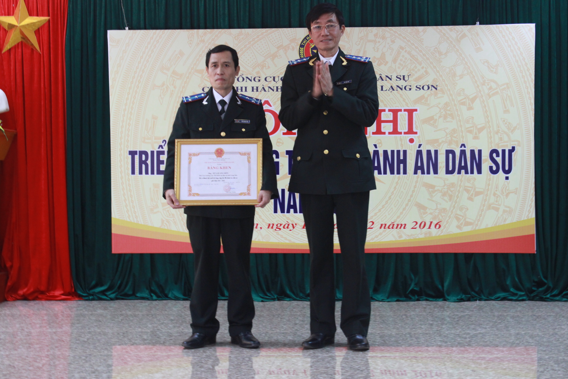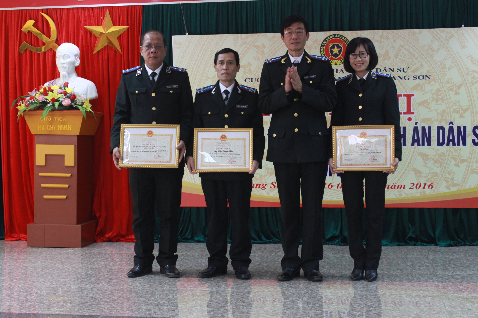 Tại Hội nghị, đồng chí Cục trưởng đã trao tặng hình thức Bằng khen của Bộ trưởng Bộ Tư pháp đối với các đợt khen chuyên đề cho 02 tập thể, 01 cá nhân; trao kỷ niệm chương của Bộ Tư pháp cho 04 cá nhân; trao tặng Bằng khen của UBND tỉnh cho 01 cá nhân.
