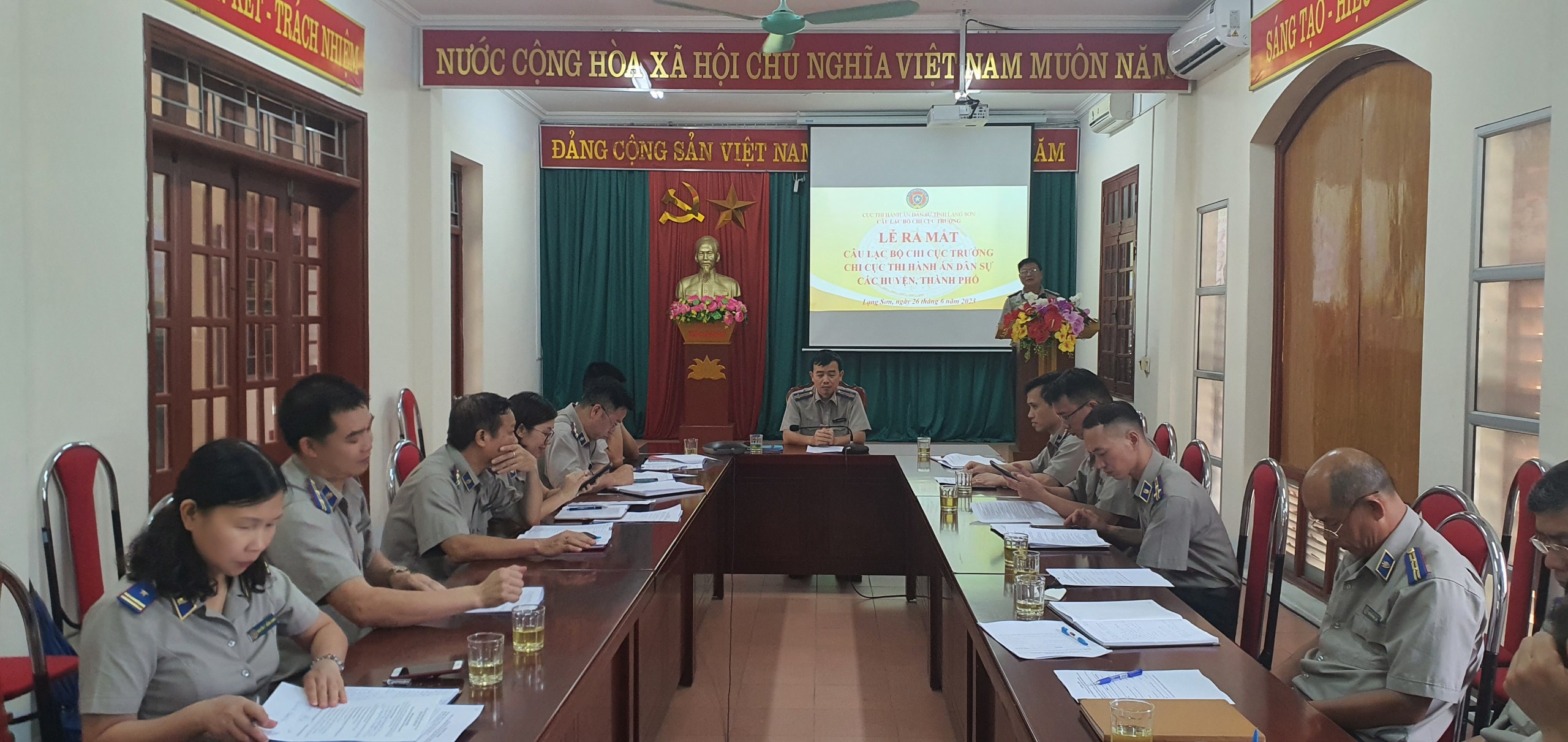 Ngày 26/6/2023, tại Hội trường Cục THADS tỉnh Lạng Sơn đã tổ chức Lễ ra mắt Câu lạc bộ Chi cục trưởng Chi cục THADS các huyện, thành phố. Tham dự Lễ ra mắt vinh dự có đồng chí Nguyễn Hữu Tài, Q. Cục trưởng, đồng chí Lê Văn Cường, Phó Cục trưởng cùng các đồng chí Trưởng các Phòng chuyên môn và 11 Chi cục trưởng Chi cục THADS các huyện, thành phố tham dự.