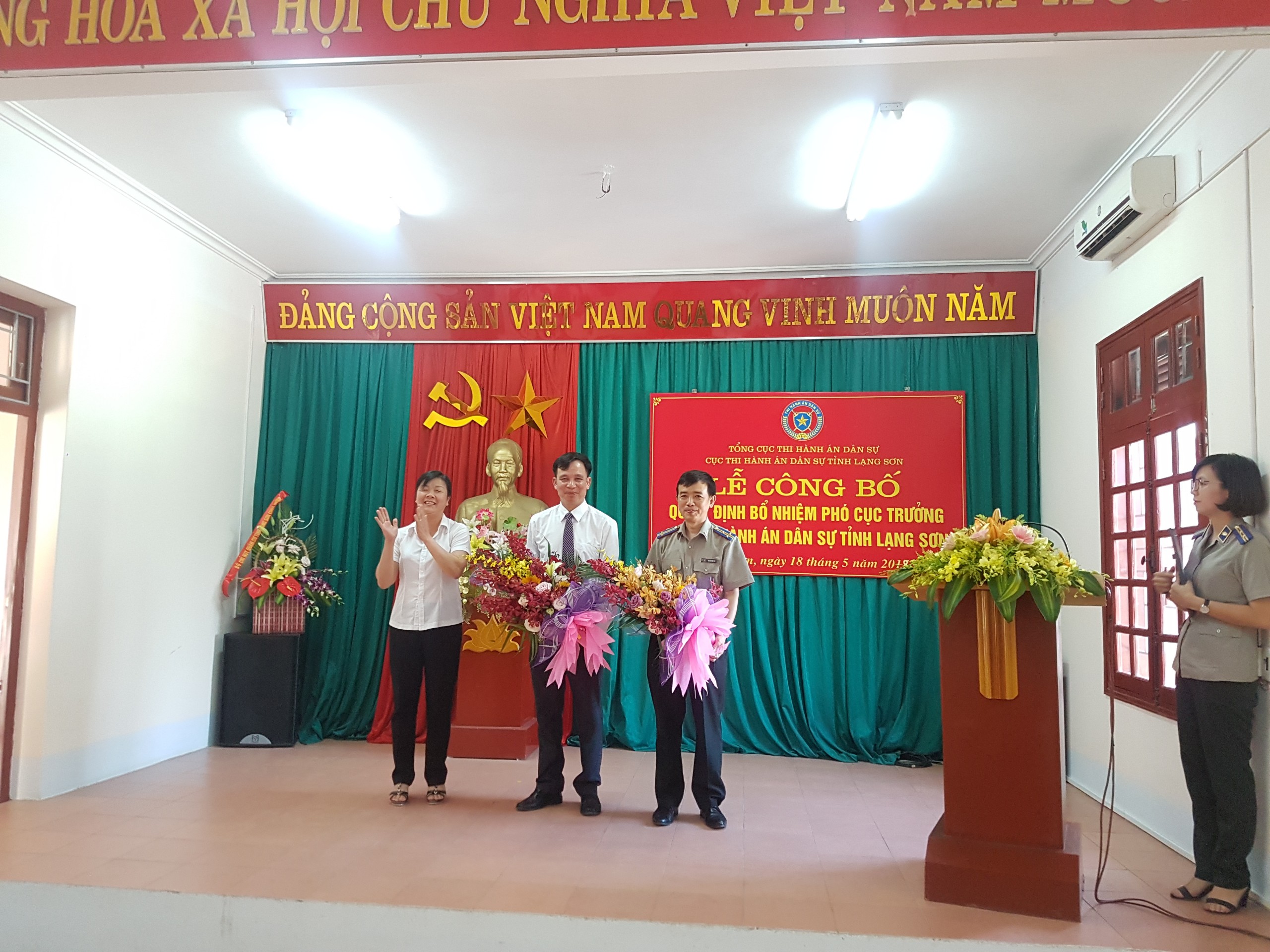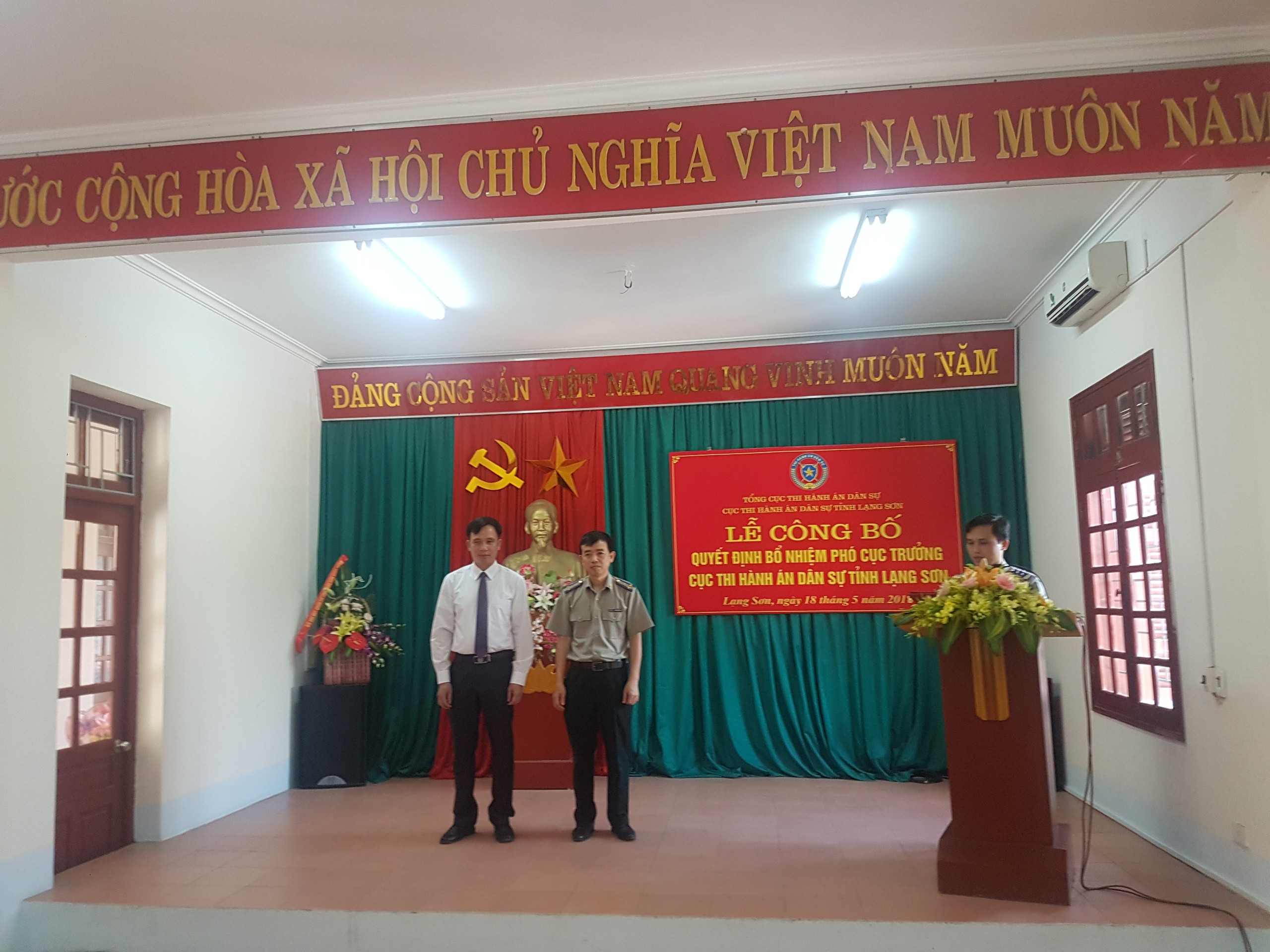 Thực hiện các quyết định của Tổng cục trưởng Tổng cục THADS về việc bổ nhiệm công chức lãnh đạo, chiều ngày 18/5/2018, Cục Thi hành án dân sự (THADS) tỉnh Lạng Sơn tổ chức lễ công bố Quyết định bổ nhiệm Phó Cục trưởng Cục THADS tỉnh Lạng Sơn đối với ông Chu Đức Hiếu, Chuyên viên chính, Trưởng Phòng Theo dõi công tác các cơ quan Nội chính, Ban Nội chính Tỉnh ủy Lạng Sơn và ông Nguyễn Hữu Tài, Phó Trưởng Phòng Nghiệp vụ và tổ chức thi hành án Cục Thi hành án dân sự tỉnh Lạng Sơn.