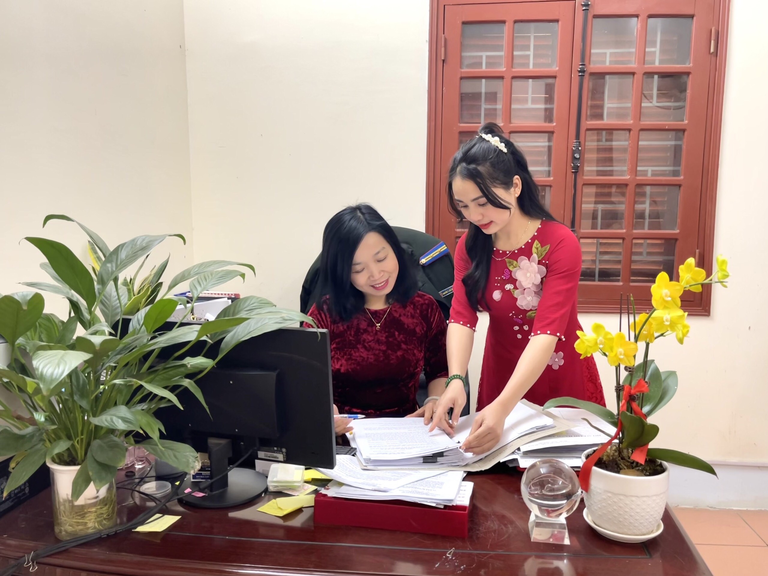 Một số hình ảnh nữ công chức, người lao động Cục Thi hành án dân sự mặc áo dài tại nơi làm việc: