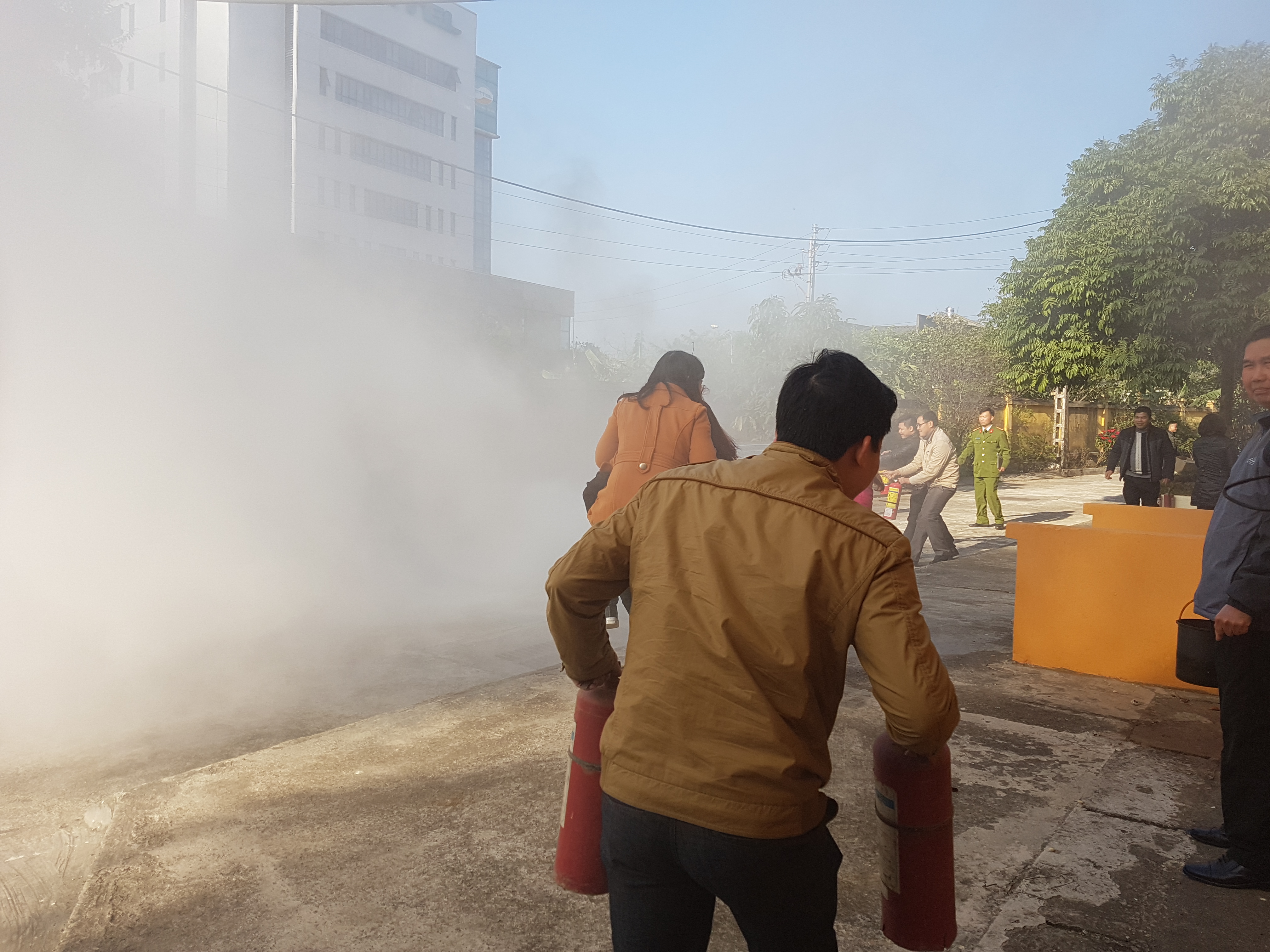 Các cán bộ, công chức và người lao động đã được thực hành cách sử dụng các phương tiện vòi nước, bình bột, bình CO2 để dập tắt đám cháy và cách thức xử lý nhanh các tình huống có thể xảy ra. Thưc tập phương án chữa cháy phối hợp cùng với sự hướng dẫn chuyên nghiệp của cán bộ công an PCCC tỉnh Lạng Sợn.