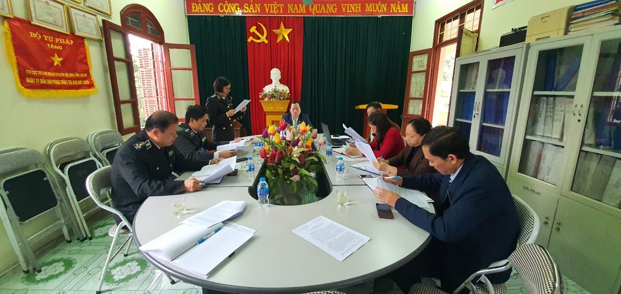 Chi bộ Chi cục THADS hiện có 10 đảng viên, chiếm 83% so với tổng số công chức, nhân viên trong đơn vị, trong đó có 09 đảng viên chính thức, 01 đảng viên dự bị. Chi bộ đã phát huy vai trò hạt nhân chính trị, lãnh đạo toàn diện các mặt công tác: Công tác xây dựng đảng được quan tâm chú trọng; chất lượng sinh hoạt đảng được nâng lên, duy trì sinh hoạt chi bộ định kỳ đều đặn, nghiêm túc, đúng thời gian; công tác kiểm tra, giám sát được triển khai đúng quy định; công tác phát triển đảng được quan tâm, chú trọng. Việc triển khai thực hiện Nghị quyết Trung ương 4 khóa XI, khóa XII gắn với học tập và làm theo tư tưởng, đạo đức, phong cách Hồ Chí Minh được triển khai thực hiện có hiệu quả. Công tác lãnh đạo, chỉ đạo thực hiện nhiệm vụ chuyên môn nghiệp vụ THADS đúng trọng tâm, trọng điểm, phù hợp với thực tiễn công tác THADS trên địa bàn huyện, giải quyết được một số vụ việc THADS khó khăn, phức tạp. Công tác phối hợp trong THADS chặt chẽ, đạt hiệu quả cao, cấp ủy, chính quyền địa phương ngày càng có sự quan tâm sâu sát trong chỉ đạo công tác THADS. Kết quả THADS năm 2020 đạt vượt các chỉ tiêu được giao (việc đạt 87,47%, tiền đạt 60,45%). Bên cạnh đó còn có hạn chế do cấp ủy mới được kiện toàn, còn thiếu kinh nghiệm trong công tác xây dựng đảng; dịch bệnh Covid – 19 làm ảnh hưởng tới tiến độ giải quyết công việc...