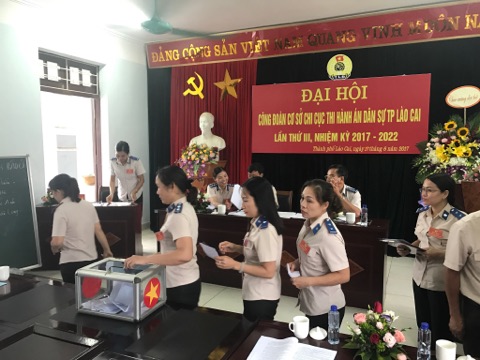 Thực hiện kế hoạch số 03/KH- LĐLĐ ngày 01/3/2017 của Liên đoàn lao động thành phố Lào Cai về việc tổ chức Đại hội Công đoàn cơ sở tiến tới Đại hội lần thứ V Liên đoàn lao động thành phố, nhiệm kỳ 2017 - 2022. Được sự nhất trí của Chi ủy Chi bộ và BTV Liên đoàn lao động thành phố, sáng ngày 17/6/2017 Công đoàn cơ sở Chi cục Thi hành án dân sự thành phố Lào Cai đã long trọng tổ chức đại hội lần thứ III, nhiệm kỳ 2017 - 2022.