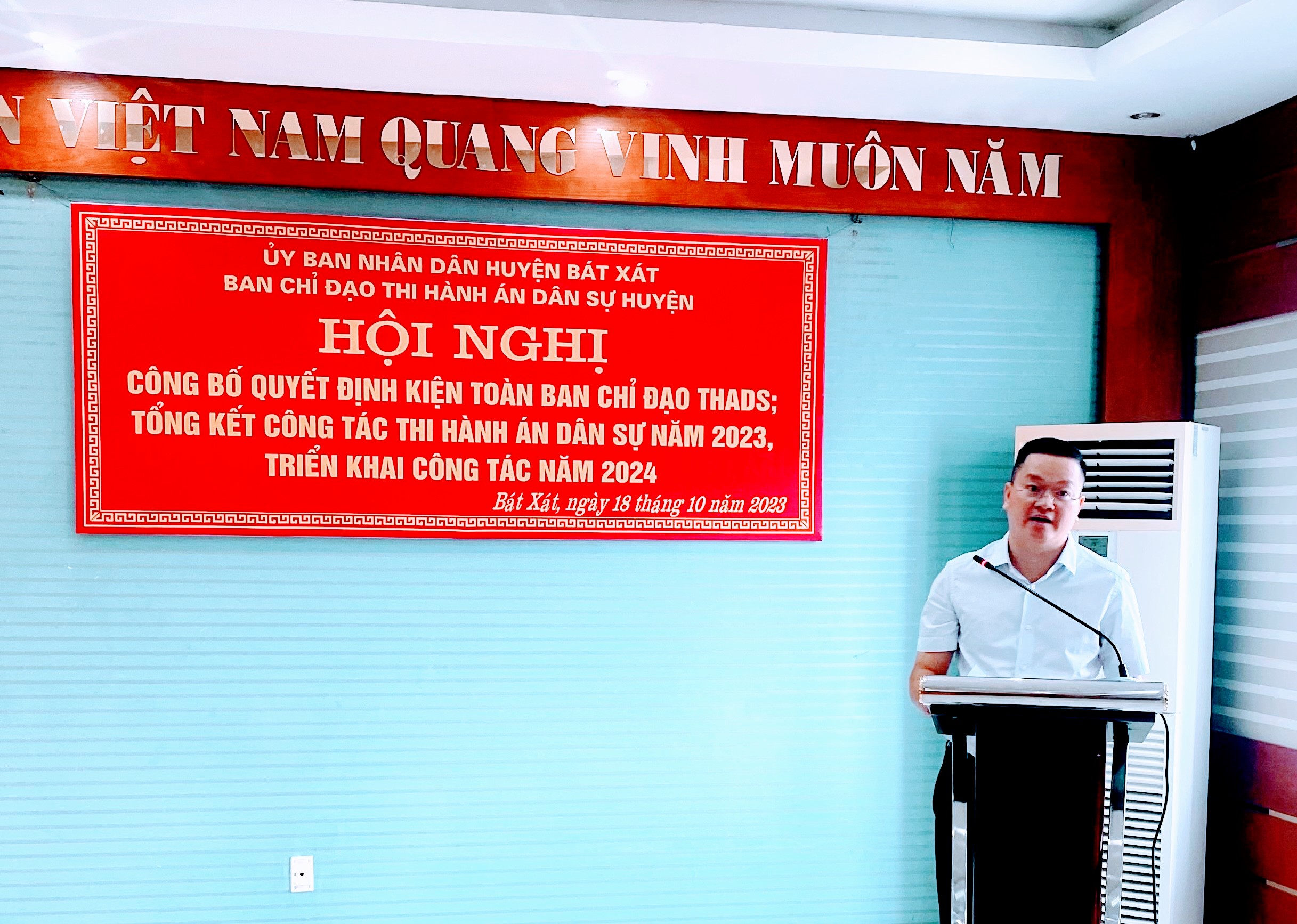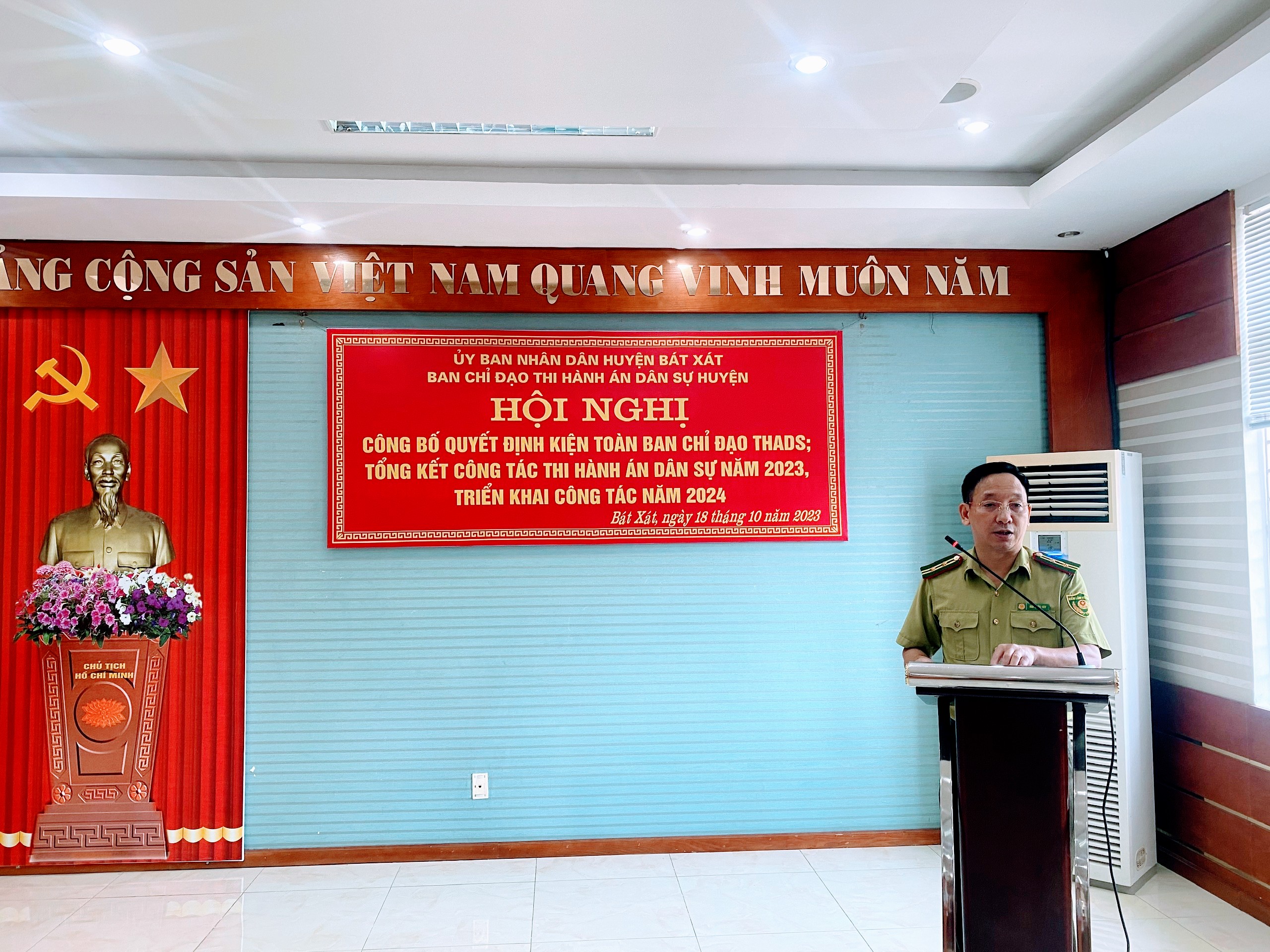 Sáng 18/10, Ban Chỉ đạo Thi hành án dân sự huyện Bát Xát tổ chức Hội nghị công bố Quyết định kiện toàn Ban Chỉ đạo thi hành án dân sự (THADS); tổng kết công tác THADS năm 2023, triển khai công tác năm 2024.