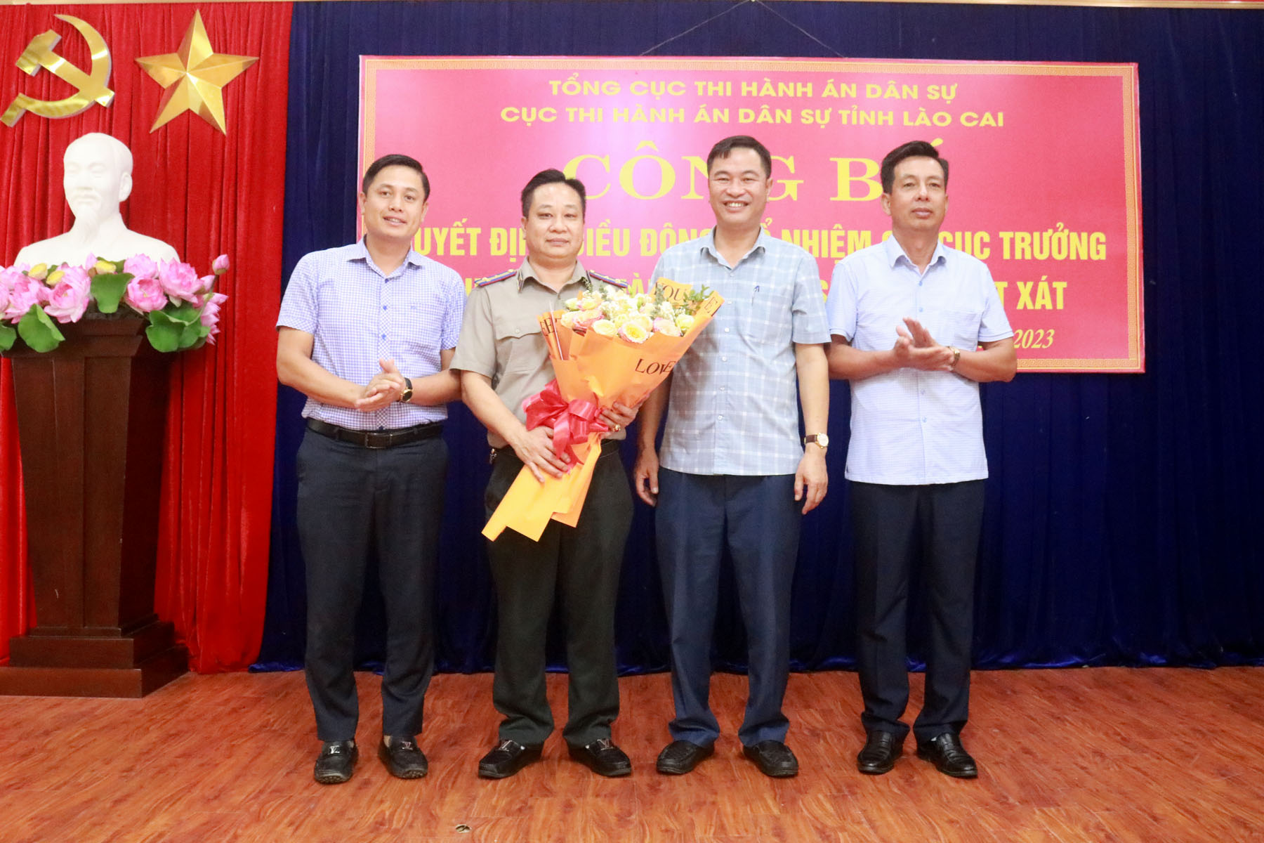 Tại buổi lễ Cục Thi hành án dân sự tỉnh Lào Cai đã công bố Quyết định của Tổng cục Trưởng Tổng cục Thi hành án dân sự – Bộ Tư pháp về việc điều động và bổ nhiệm bà Vũ Ngọc Phương, Chấp hành viên sơ cấp, Phó Chánh Văn phòng Cục Thi hành án dân sự tỉnh Lào Cai giữ chức vụ Chi cục trưởng Chi cục Thi hành án dân sự huyện Bát Xát, tỉnh Lào Cai, kể từ ngày 25/5/2023. Thời hạn giữ chức vụ 05 năm kể từ ngày bổ nhiệm.