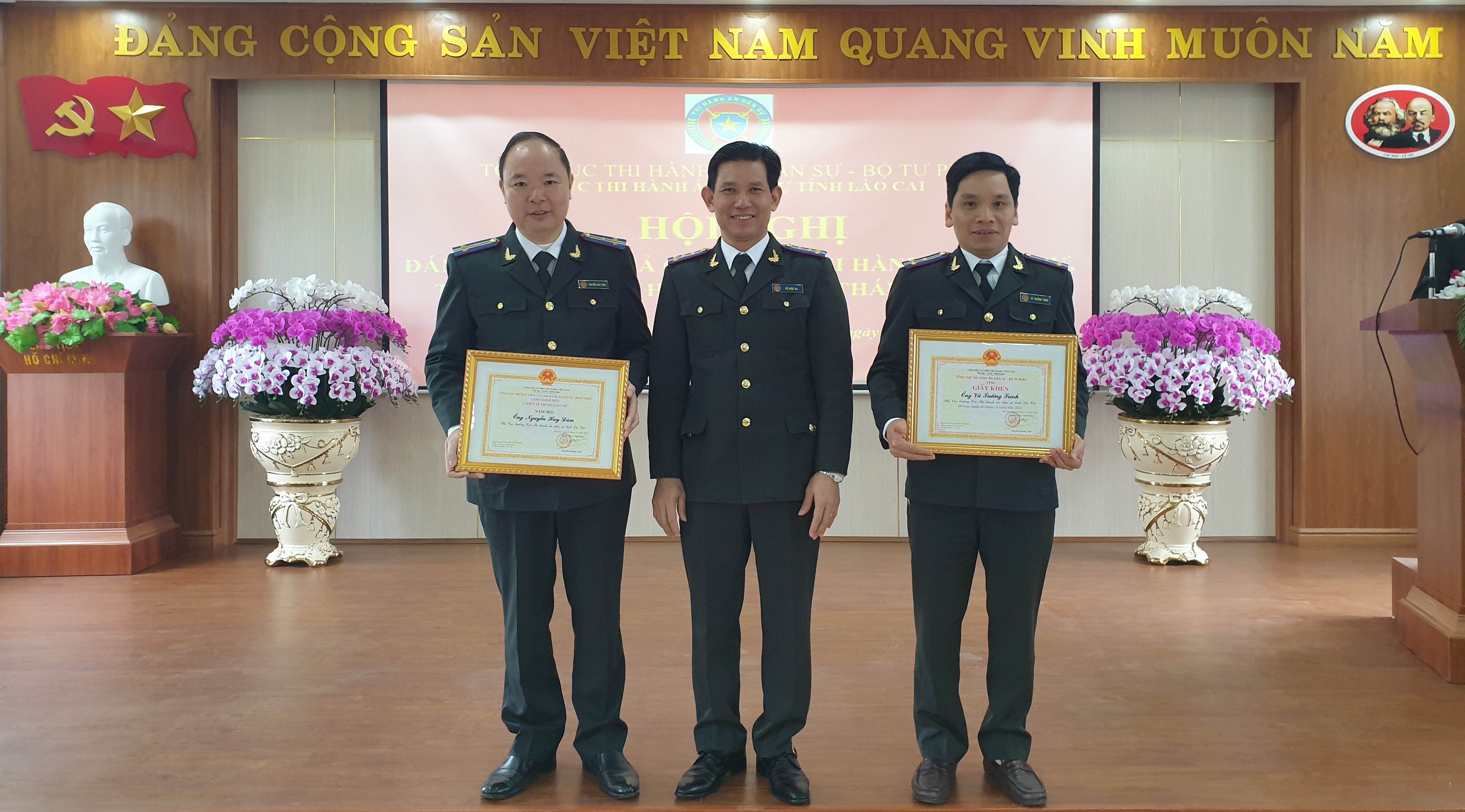 Sáng ngày 31/01/2024, Cục Thi hành án dân sự tỉnh Lào Cai đã tổ chức Hội nghị đánh giá kết quả công tác thi hành án dân sự, theo dõi thi hành án hành chính 04 tháng đầu năm 2024. Đồng chí Đỗ Ngọc Ba - Quyền Cục trưởng chủ trì Hội nghị. Cùng tham dự Hội nghị có các đồng chí Lãnh đạo Cục; Lãnh đạo các Phòng chuyên môn; Lãnh đạo các Chi cục và toàn thể Chấp hành viên.