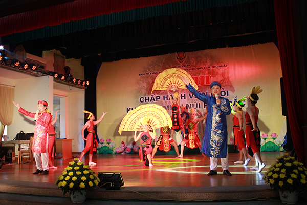 Đúng như nhận định của đồng chí Nguyễn Văn Sơn, Hội thi tưng bừng sắc màu văn hóa miền núi phía Bắc được 13 đội thi mang đến ngay từ màn chào hỏi vô cùng thu hút và hấp dẫn. Đội thi đầu tiên đến từ Lào Cai mở đầu với những lời ca ngành thi hành án kết hợp giới thiệu về đơn vị đầy đủ và hấp dẫn. Tiếp đó là Bắc Giang với phần giới thiệu trên nền nhạc tha thiết “Trên quê hương quan họ”; đặc sắc phải kể đến màn thi hát múa công phu của tỉnh Phú Thọ, đầu tư kỹ lưỡng của Đội thi đến từ tỉnh Cao Bằng, Hà Giang, hoạt cảnh “rồng rắn lên mây” đáng yêu, thu hút của tỉnh Tuyên Quang; bài giới thiệu sôi nổi, đầy đủ của Yên Bái, Bắc Kạn, Thái Nguyên, … Có thể nói, ở phần thi Chào hỏi, chỉ với 5 phút vừa chuẩn bị, vừa trình bày nhưng các đội dự thi đã giới thiệu được những nét đặc trưng cơ bản của quê hương, điểm nổi bật trong công tác thi hành án tại địa phương, hoặc những danh lam thắng cảnh, văn hóa truyền thống... Mỗi đội thi mang đến màu sắc văn hóa riêng đặc trưng của mỗi tỉnh miền núi phía Bắc đã tạo nên những ấn tượng ban đầu khó quên.