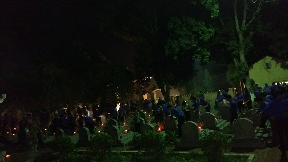Các đoàn viên thanh niên tham gia dâng hương và thắp nến tri ân tại nghĩa trang phường Duyên Hải, Tp Lào Cai