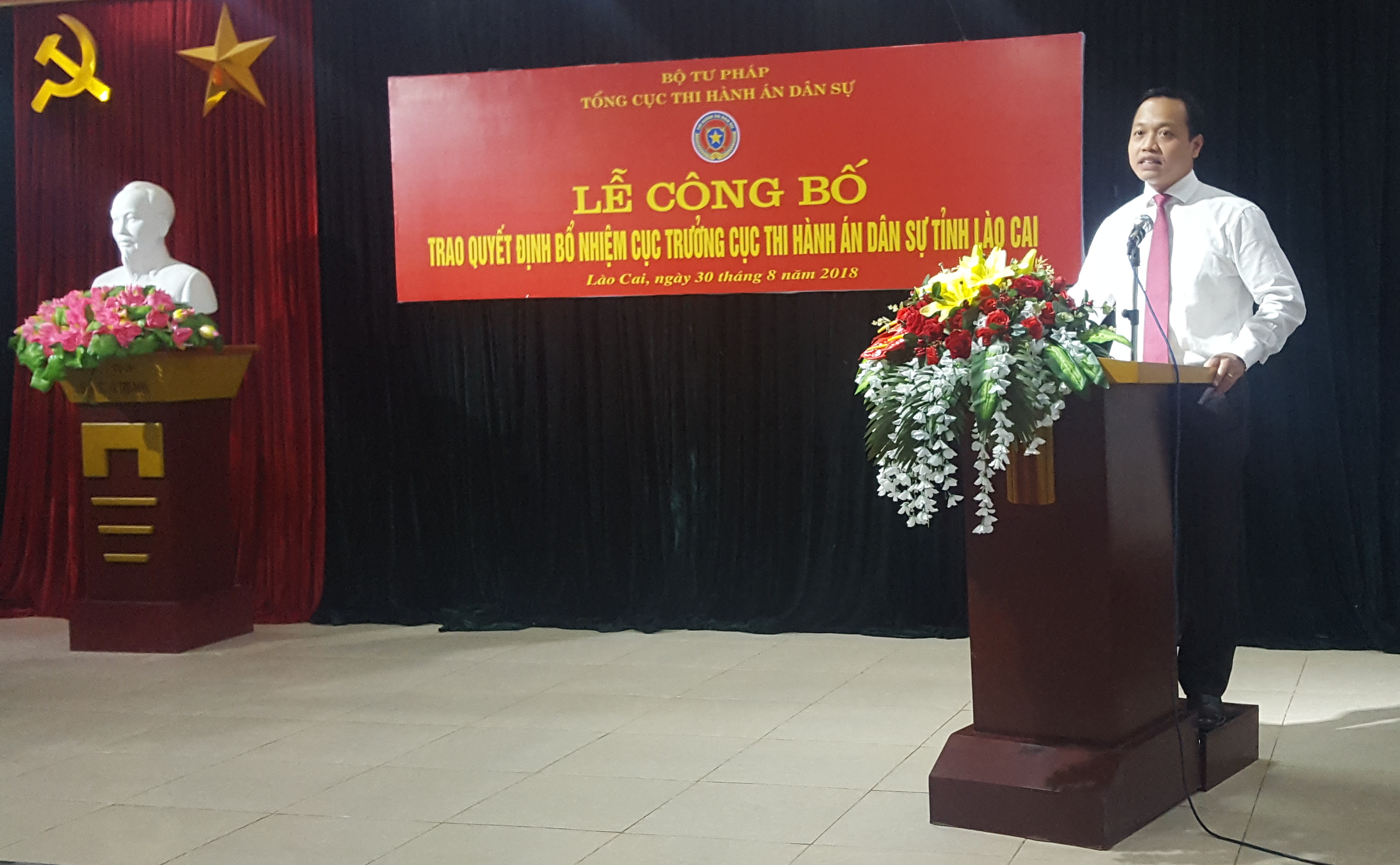Thực hiện Quyết định của Bộ trưởng Bộ Tư pháp về việc bổ nhiệm công chức giữ chức vụ lãnh đạo, ngày 30/8/2018, Tổng cục Thi hành án dân sự đã tổ chức Lễ công bố và trao quyết định bổ nhiệm Cục trưởng Cục Thi hành án dân sự tỉnh Lào Cai. Tham dự buổi Lễ về phía đoàn công tác của Bộ Tư pháp có ông Trần Tiến Dũng, Ủy viên Ban Cán sự đảng, Thứ trưởng Bộ Tư pháp, ông Nguyễn Thanh Thủy, Phó Tổng cục trưởng Tổng cục Thi hành án dân sự, ông Phạm Thành Trung, Phó Vụ trưởng Vụ Tổ chức cán bộ Tổng cục Thi hành án dân sự; về phía tỉnh Lào Cai có ông Đặng Xuân Thanh, Phó Chủ tịch UBND tỉnh, đại diện Lãnh đạo Ban Tổ chức Tỉnh ủy, Ban Nội chính Tỉnh ủy, Đảng ủy Khối các cơ quan tỉnh, đại diện Lãnh đạo các cơ quan Công an, TAND, Viện KSND, Sở Tư pháp và toàn thể công chức, người lao động của Cục Thi hành án dân sự, Chi cục trưởng Chi cục Thi hành án dân sự các huyện, thành phố tỉnh Lào Cai.