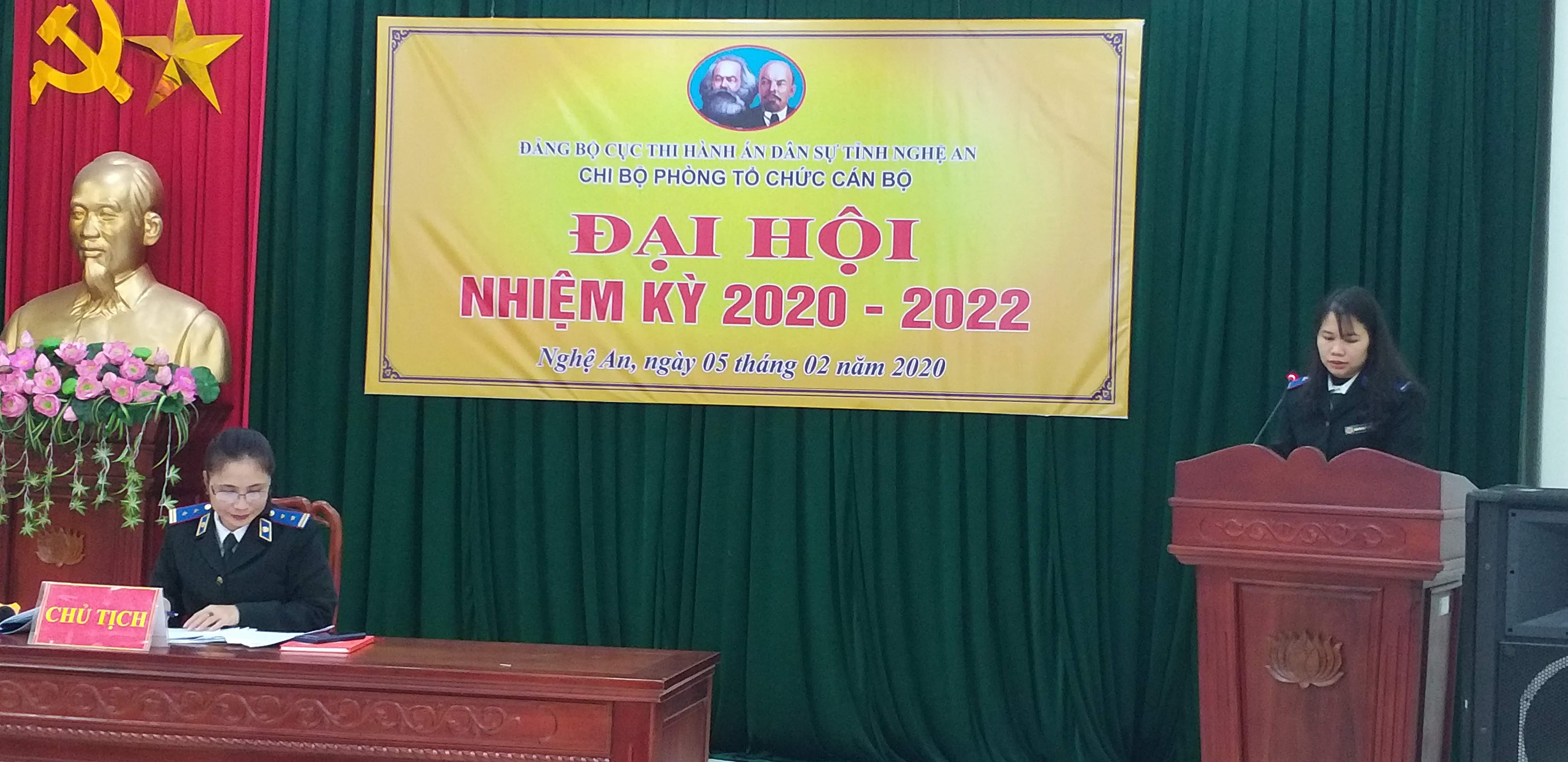 Cũng tại Đại hội của 05 Chi bộ, 100% đảng viên các Chi bộ đều đã nhất trí thông qua Nghị quyết Đại hội nhiệm kỳ 2020-2022 và nêu cao quyết tâm hoàn thành các phương hướng, chỉ tiêu, nhiệm vụ đã đề ra, góp phần xây dựng Đảng bộ Cục Thi hành án dân sự tỉnh Nghệ An ngày càng trong sạch, vững mạnh.
