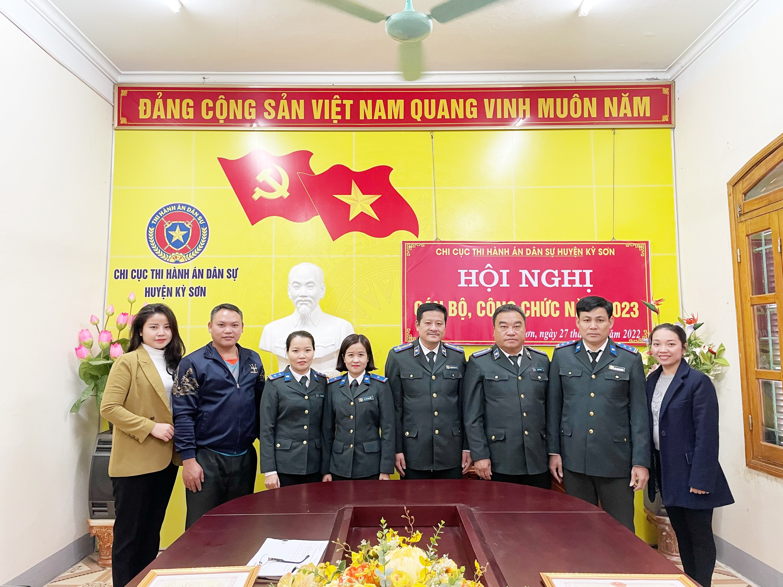 Bước sang năm 2023, tập thể cán bộ, công chức, người lao động Chi cục thi hành án dân sự huyện Kỳ Sơn tiếp tục đoàn kết, cố gắng, phấn đấu để hoàn thành xuất sắc mọi nhiệm vụ được giao!